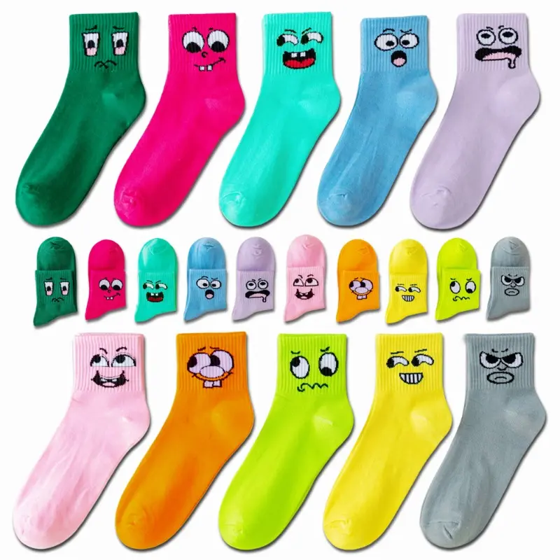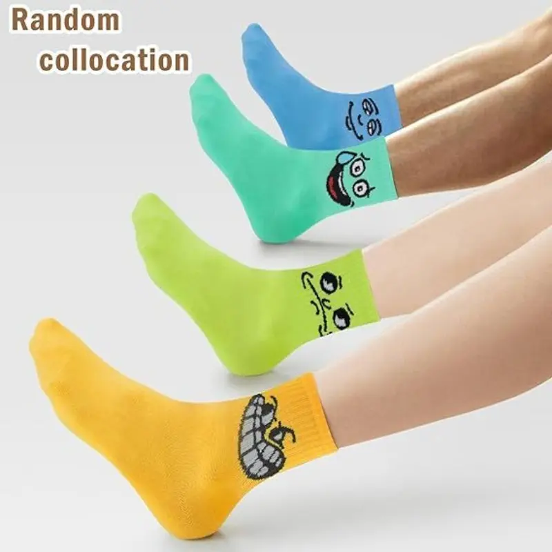 Add a playful twist to your everyday look with these funny expression crew socks for men. Featuring vibrant cartoon embroidery and a variety of bold colors, these mid-calf socks let you showcase your unique personality. Perfect for casual outings, sports, or just lounging, they offer a comfortable fit and eye-catching style. Available in multi-packs to mix and match with any outfit.