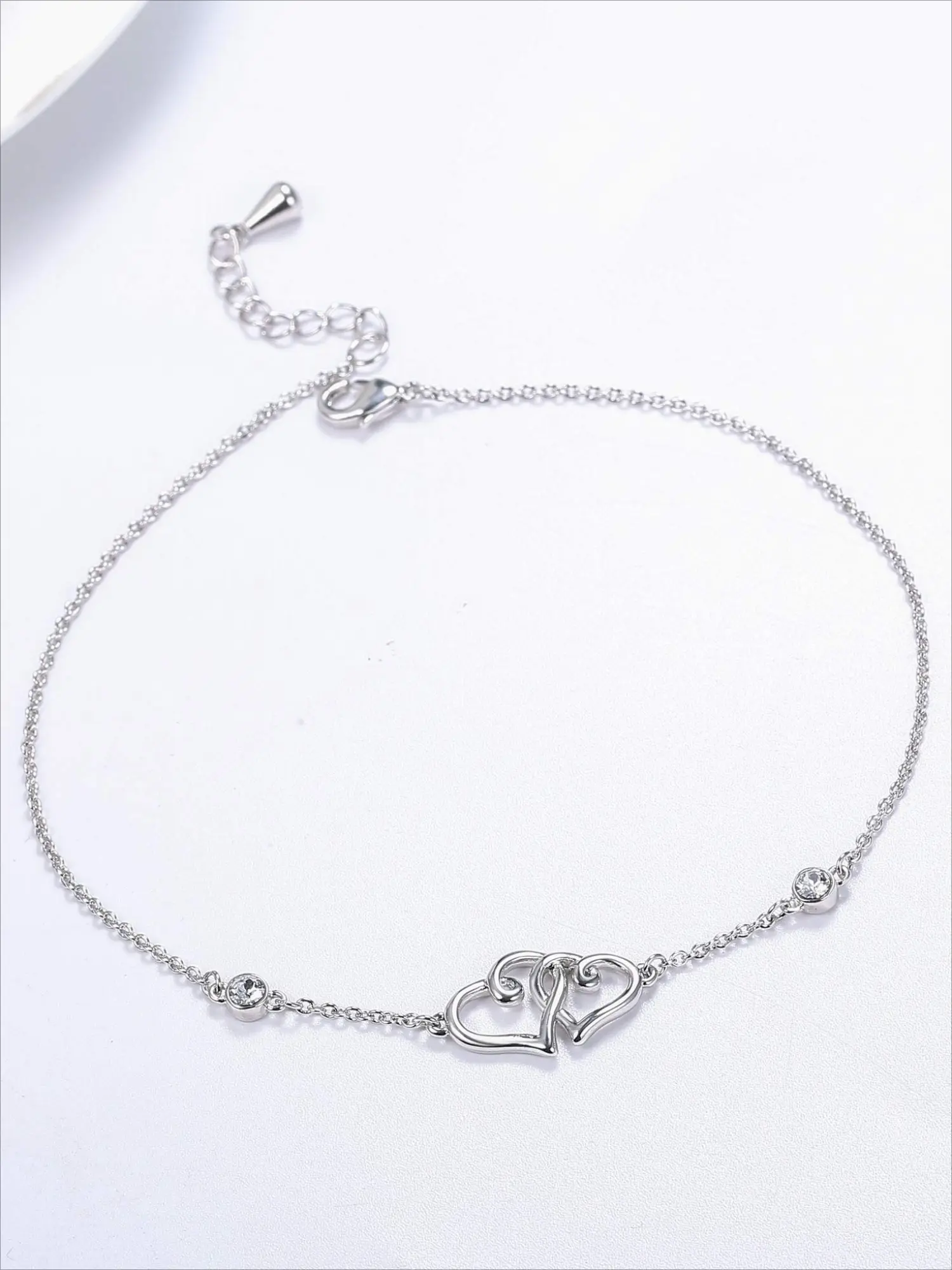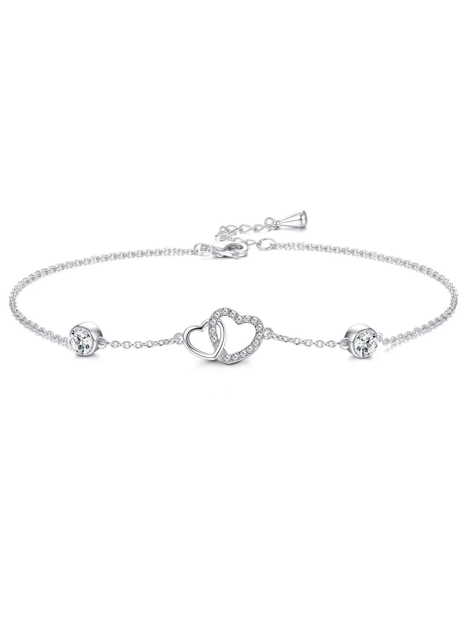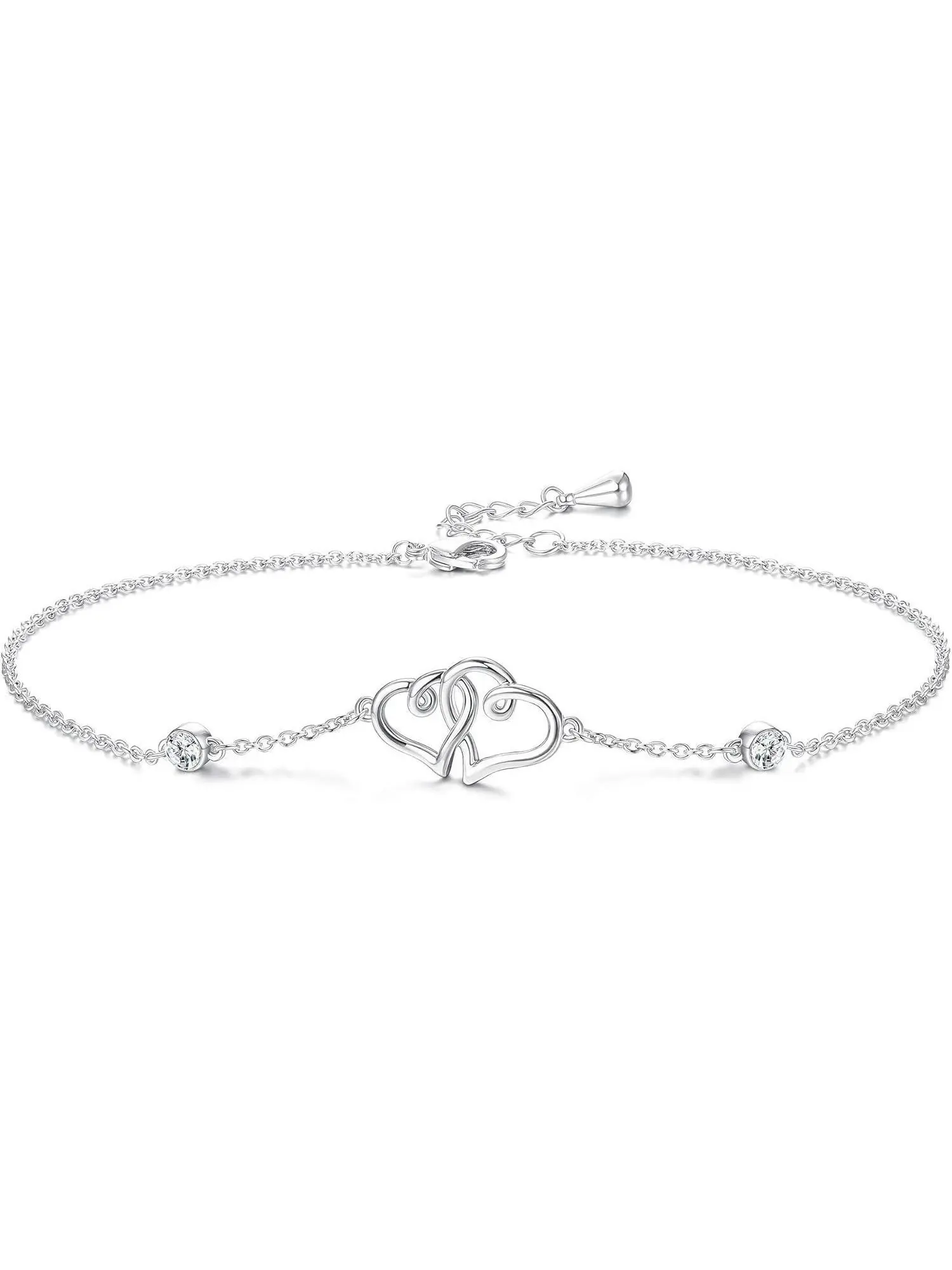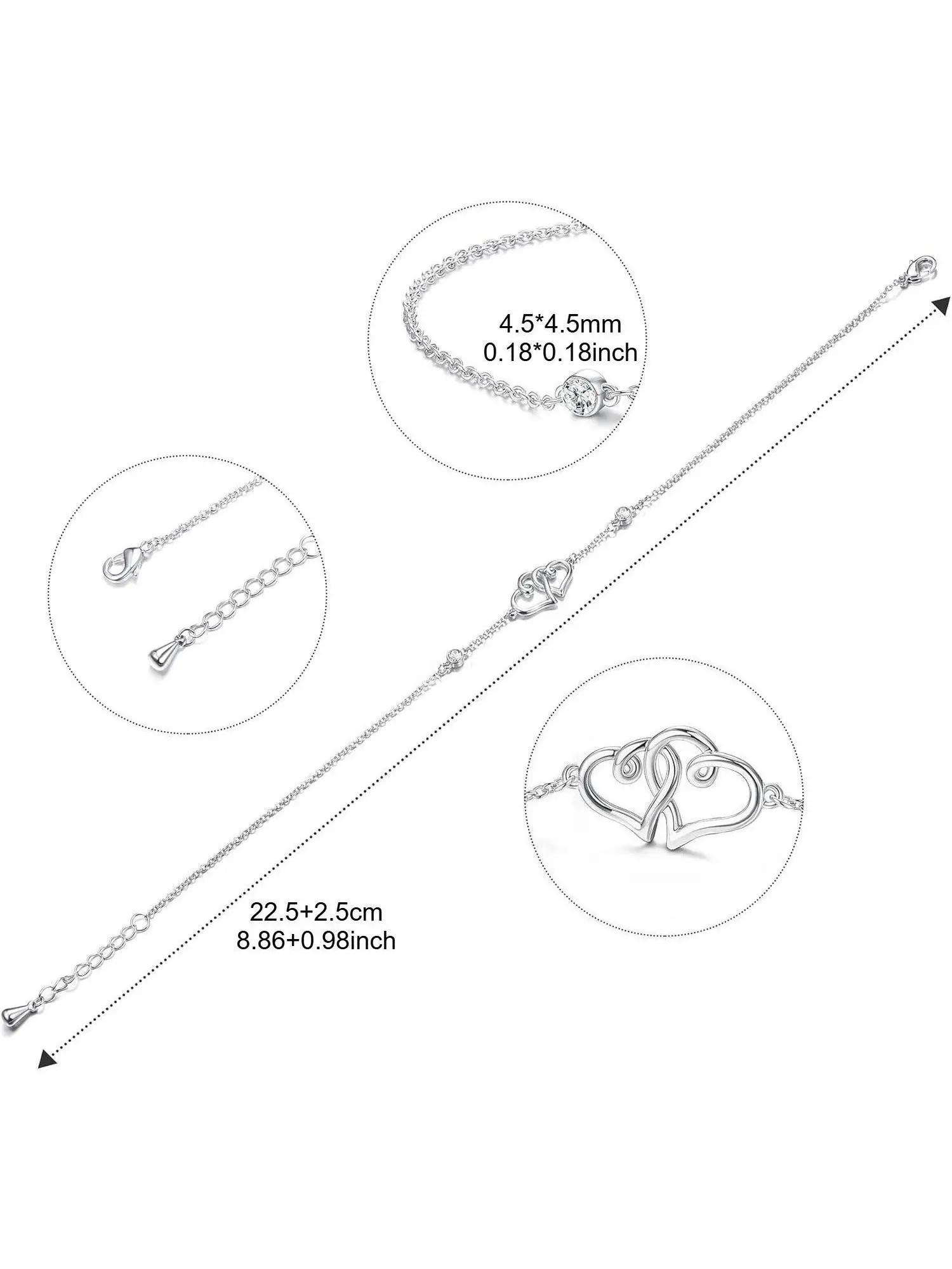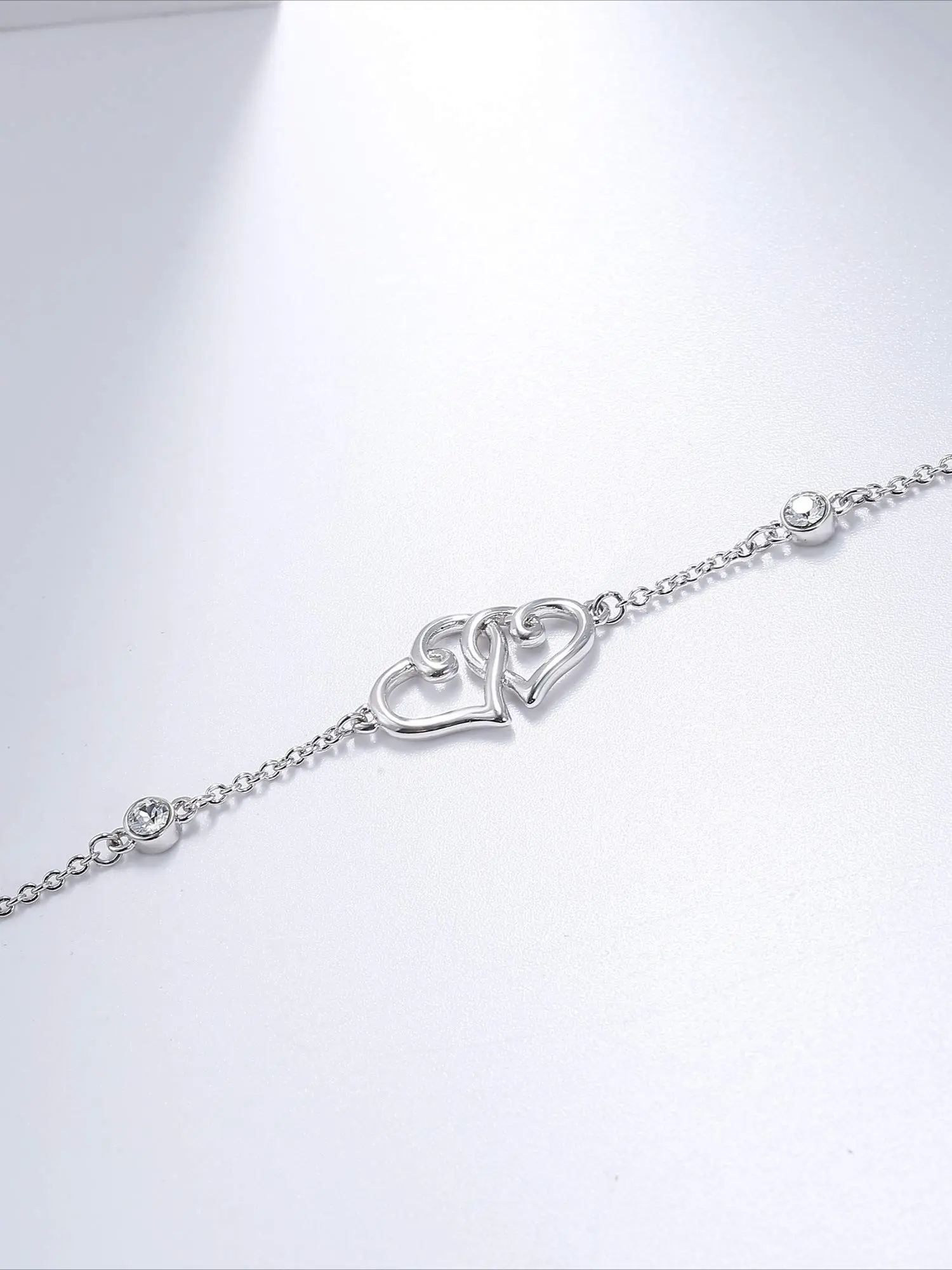 1 Pc Romantic Sophisticated Silvery Sweet Hearts Bracelet for Women Men Sleek Heart-inspired Design with Brilliant Swarovski Crystal Luxurious Glamorous Appearance Skin-friendly Premium Copper Adjustable Chain Hypoallergenic Durable Lightweight Bracelet