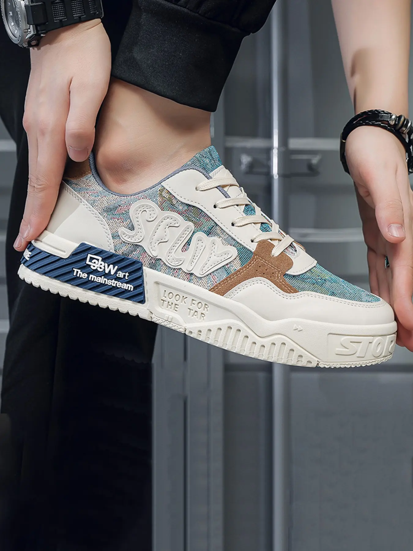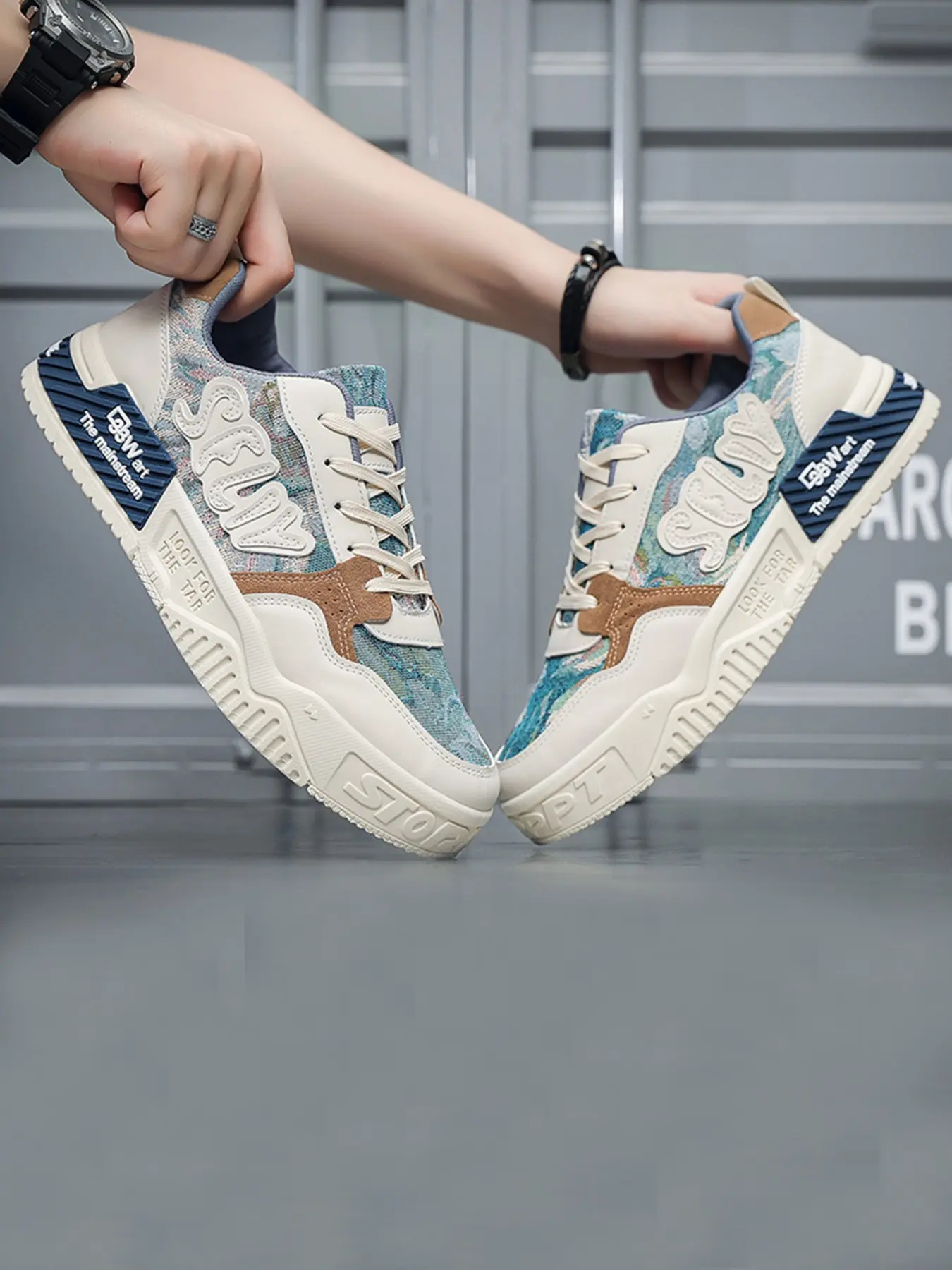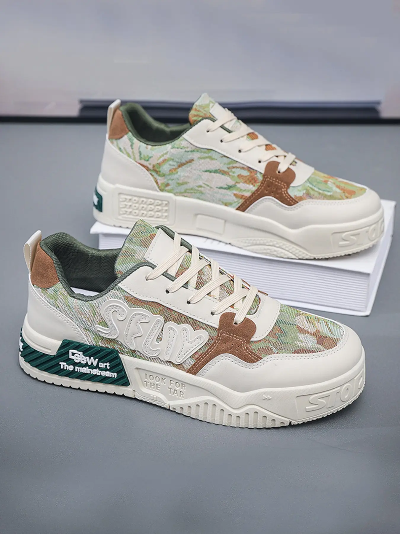 Men's Casual Sports Shoes, Spring Summer New Arrival, Size 39-44, Mint Oil Painting Style, Soft Sole Breathable Trendy Board Shoes