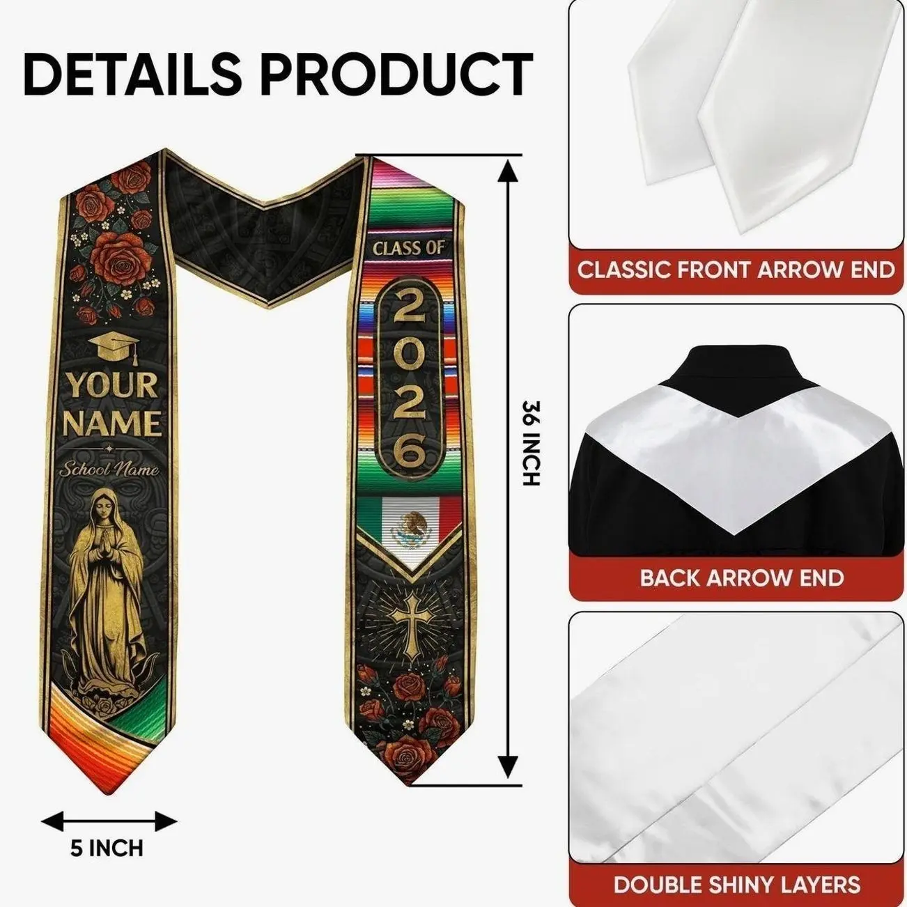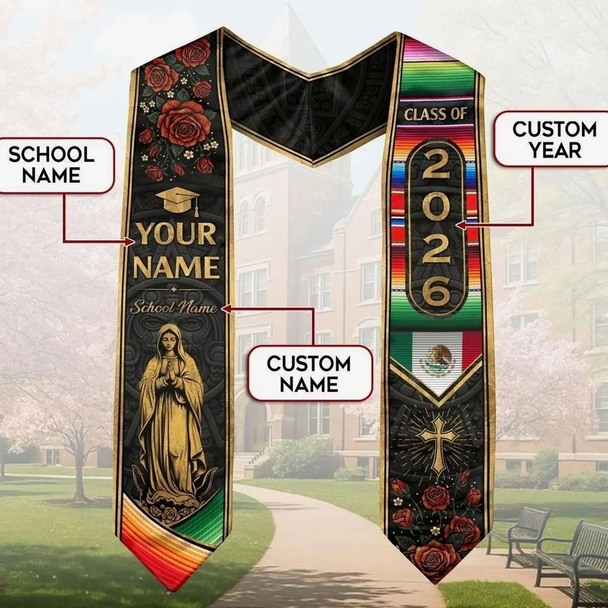 Custom Mexican Graduation Stole, Mexican Flag Graduation Sash 2026, Mexico Pattern Stole, Custom Name & School Sash Senior Graduation Gift