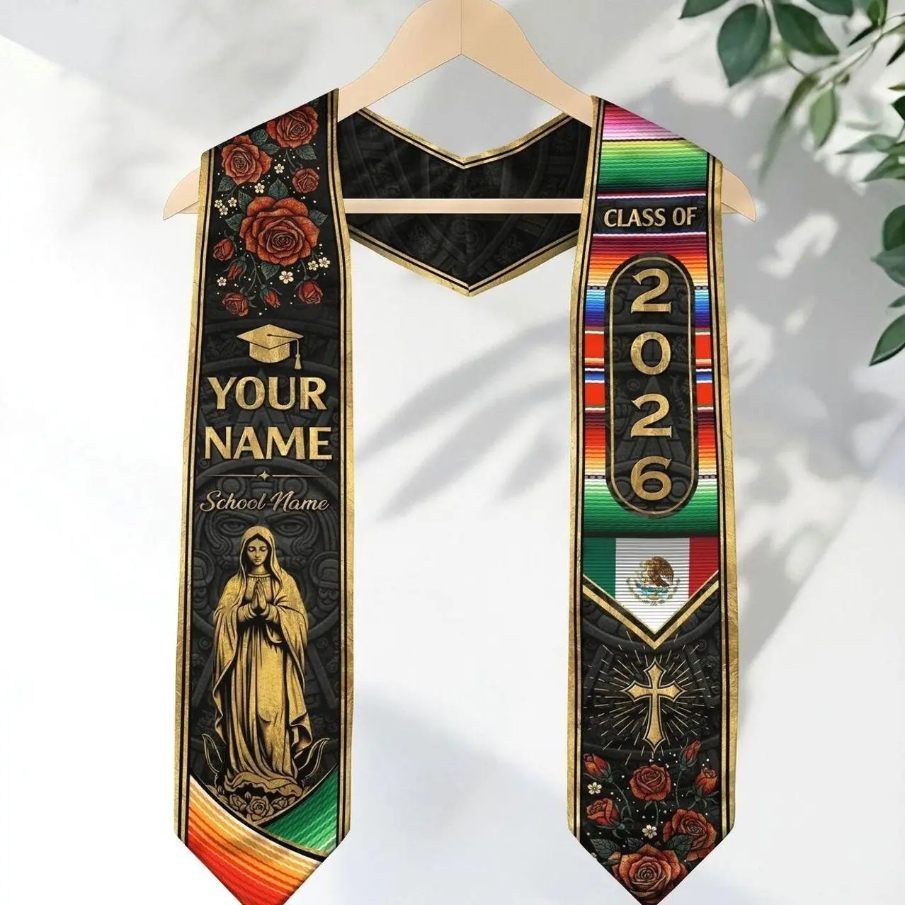 5. Custom Mexican Graduation Stole, Mexican Flag Graduation Sash 2026, Mexico Pattern Stole, Custom Name & School Sash Senior Graduation Gift
