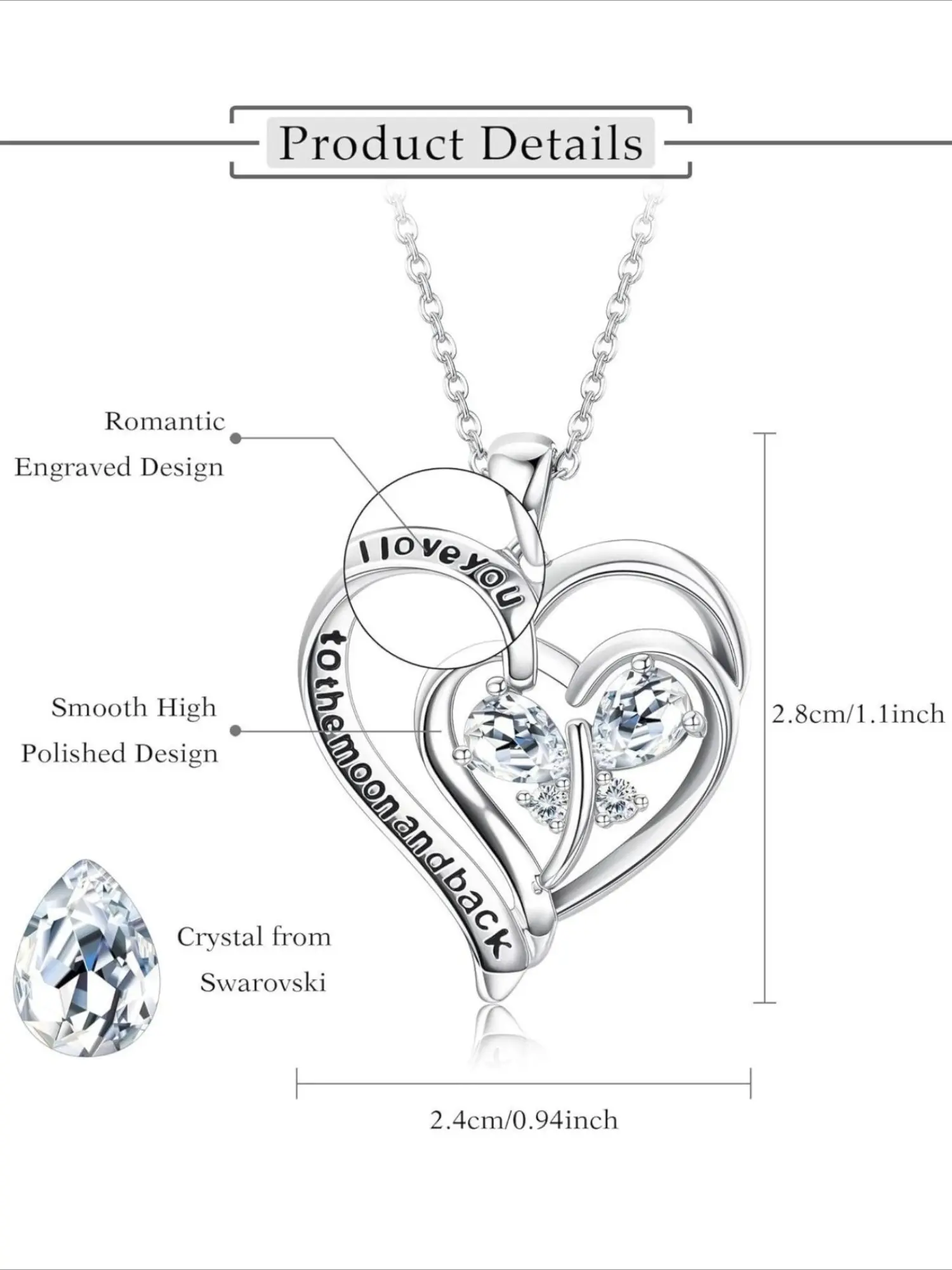1 Pc Silvery Classic Double Heart Necklace for Women Men Stunning Forever Love-inspired Design Dazzling Swarovski Crystals Romantic Glamorous Visual Effect Symbolic Double Heart Shape Great for Valentine’s Day Wedding Anniversaries Engagements