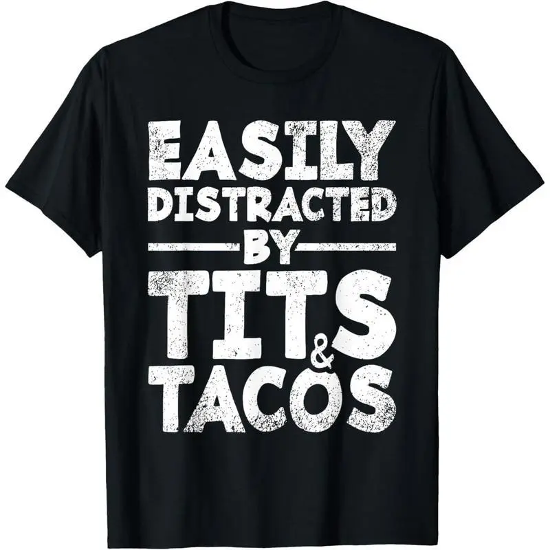 Easily Distracted By Tits and Tacos | Adult Humor Men's Gift T-Shirt made in usa