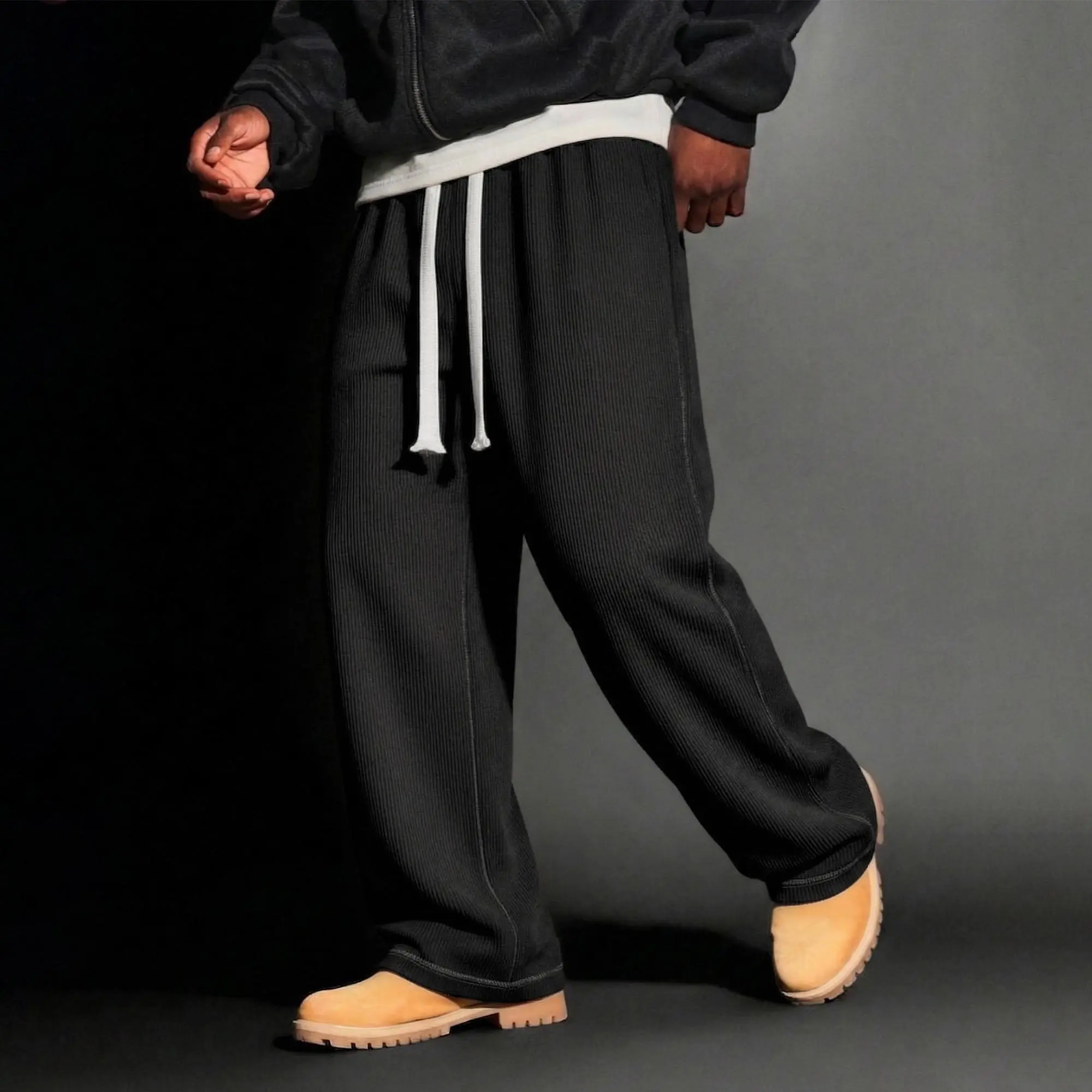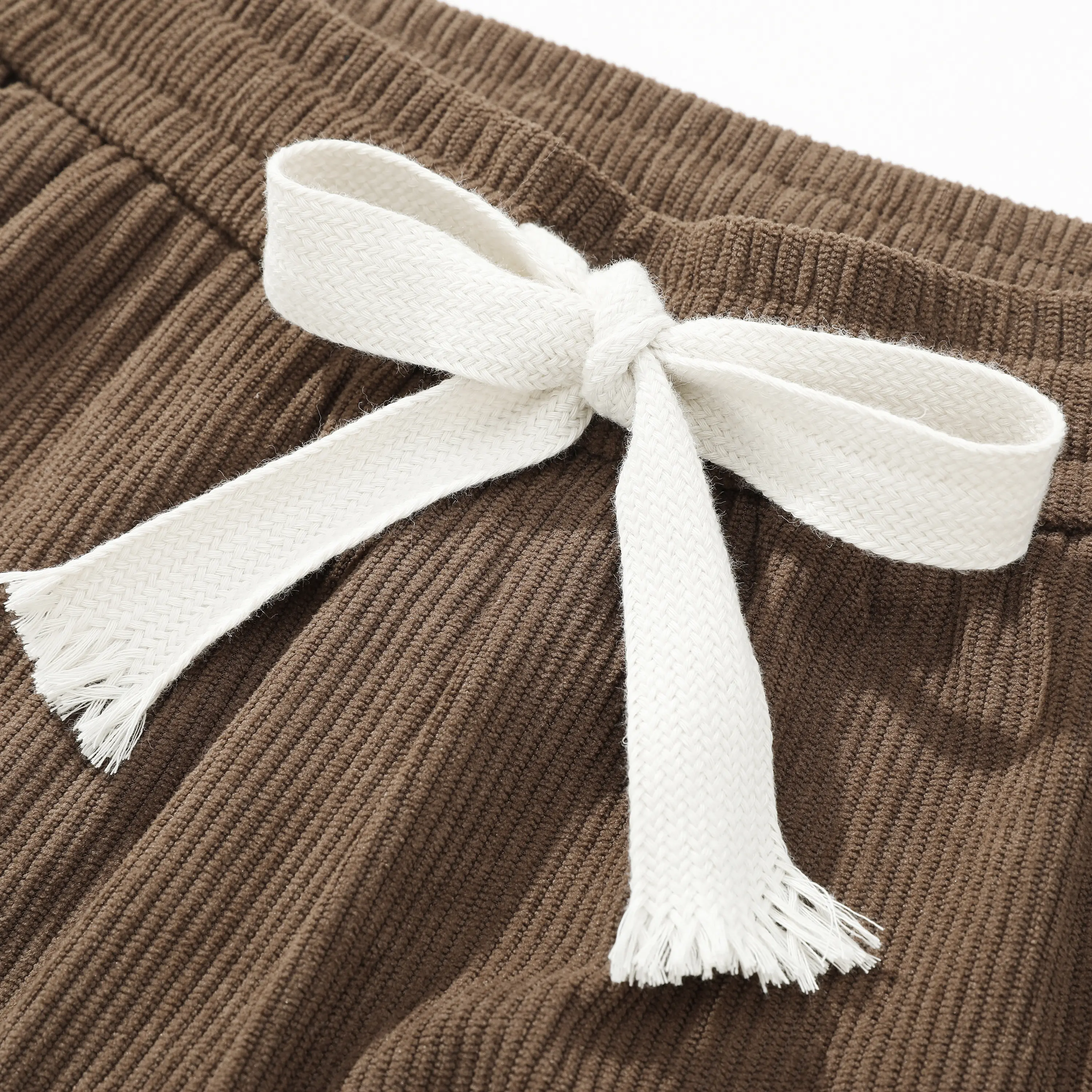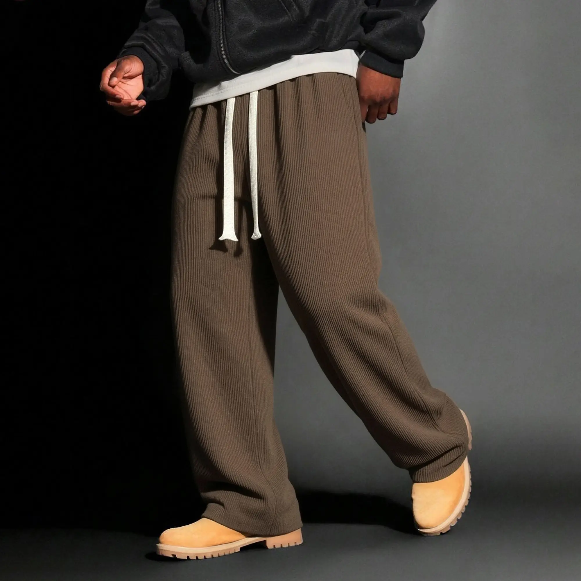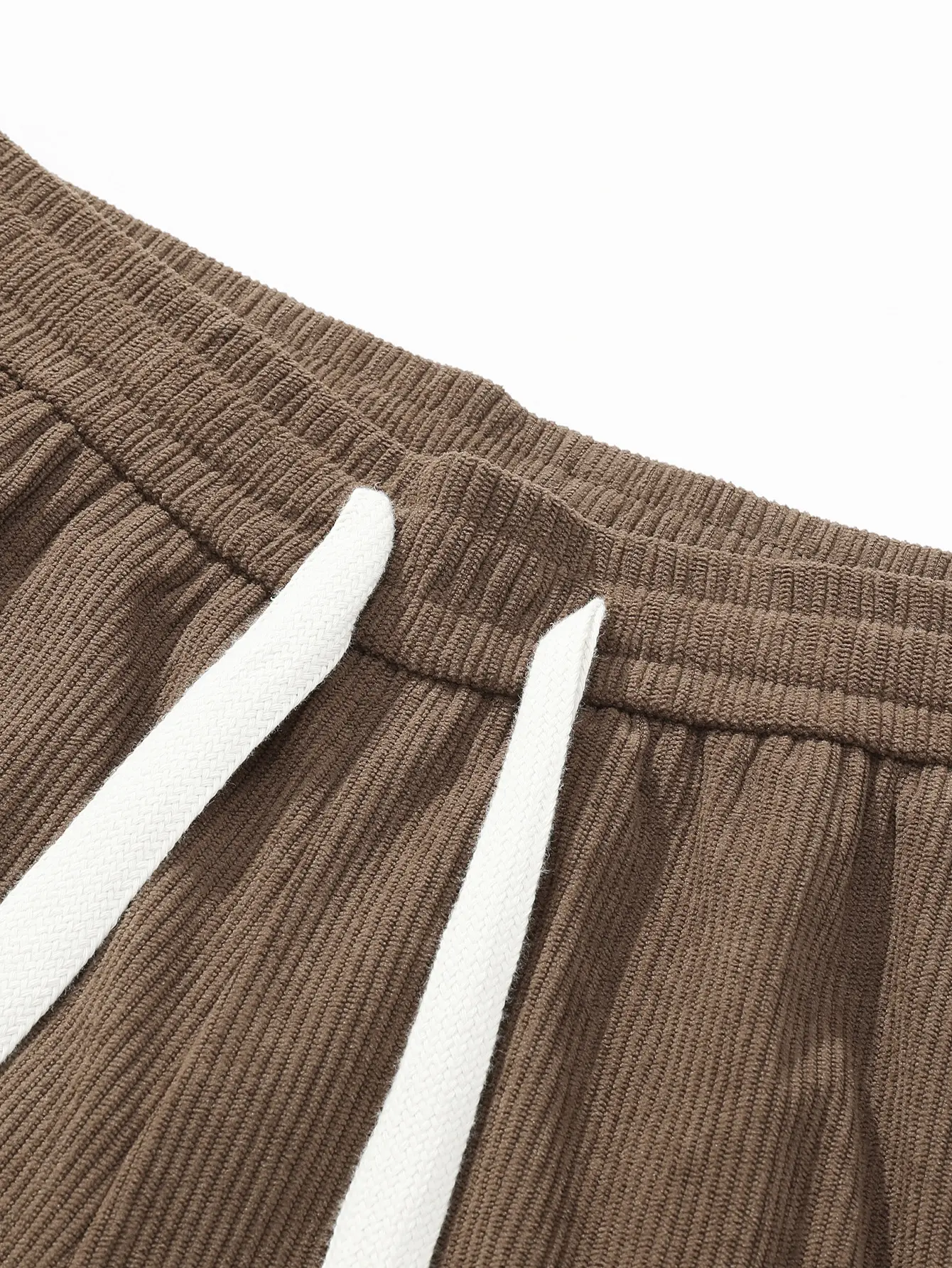 Men’s American vintage corduroy straight-leg pants—trendy, versatile brown casual long trousers with a drawstring waist and loose fit; simple, stylish men’s bottoms suitable for everyday wear and sports.