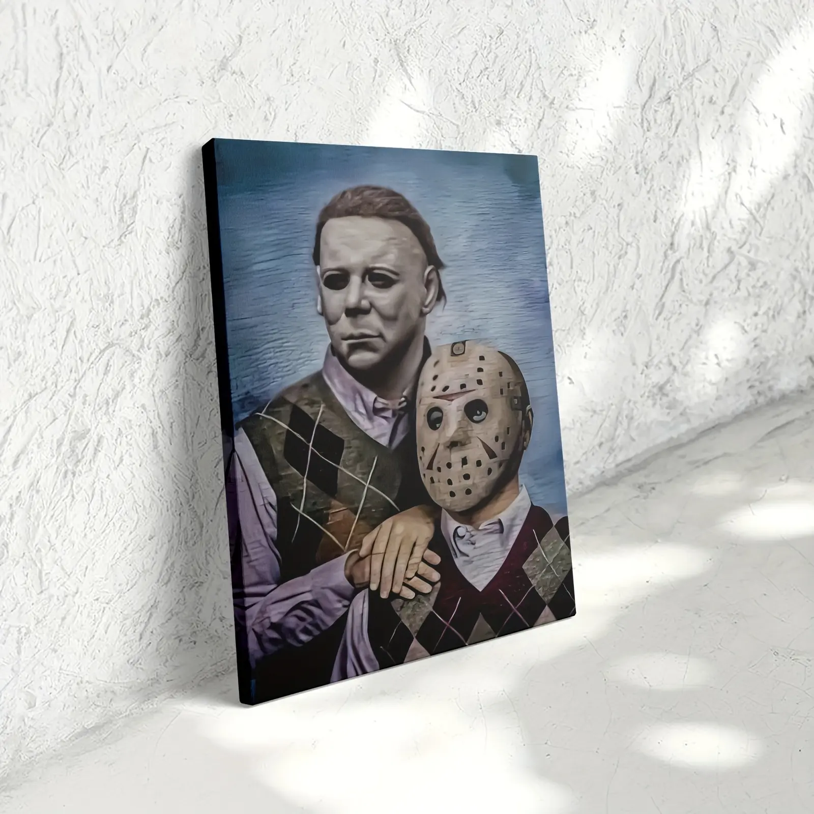 1PC Framed 2D Graphic Design Michael Myers and Jason Voorhees, perfect for home decoration, Framed Wall Art for Home Decor, Living Room, Bedroom, Office, Game Room, Man Cave