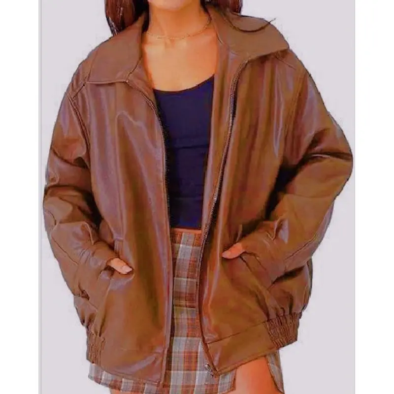 5. NewEuropean and American Style Leather Jacket Motorcycle Style Top Oversized Lapel Elastic Hem Zipper Can be used with a raincoat