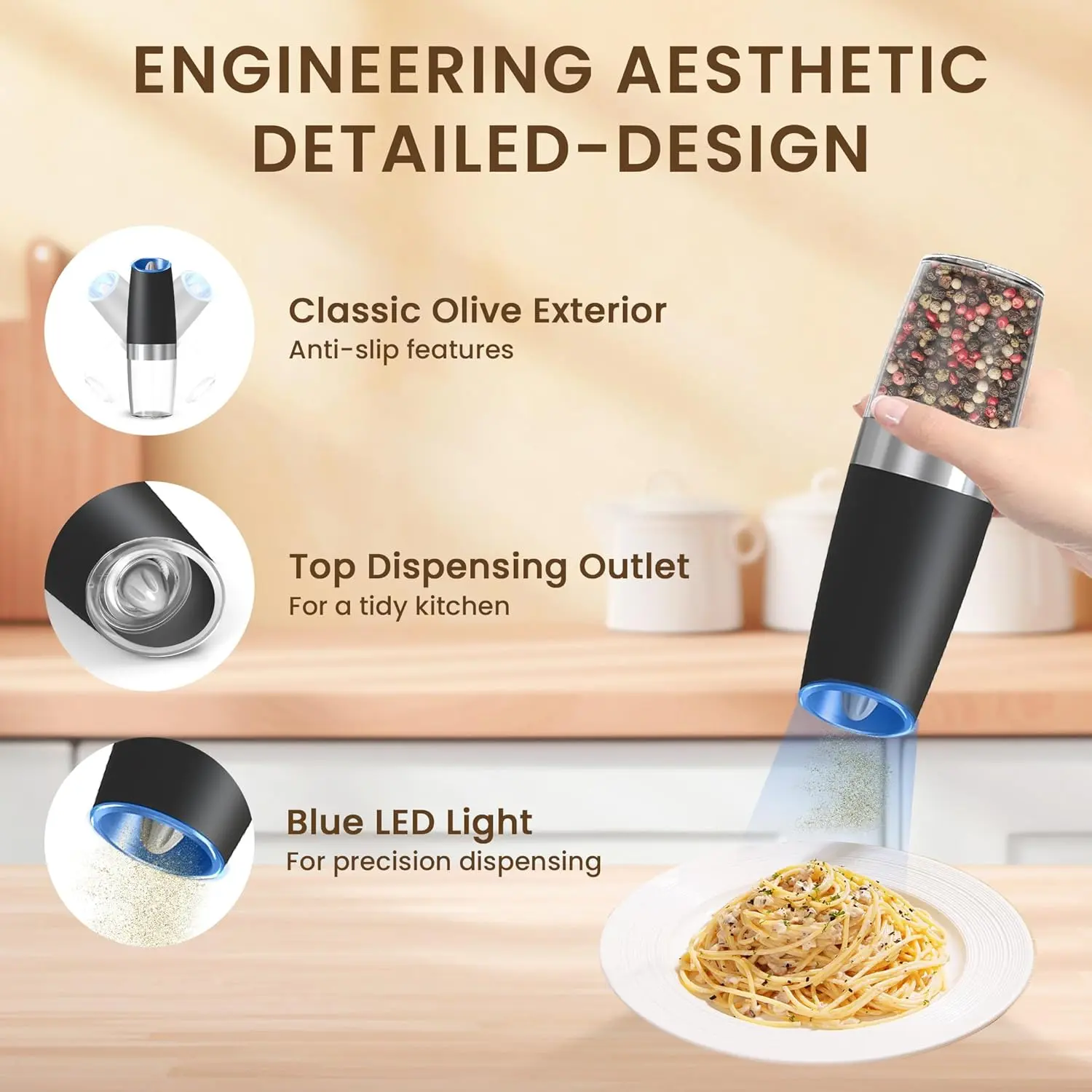 ·Stylish and Suitable: KIARYUOLL' battery salt and pepper grinder set features a sleek black design with a transparent hopper, an olive shape for grip, and is perfect for gifting, especially to those who value ease of use.