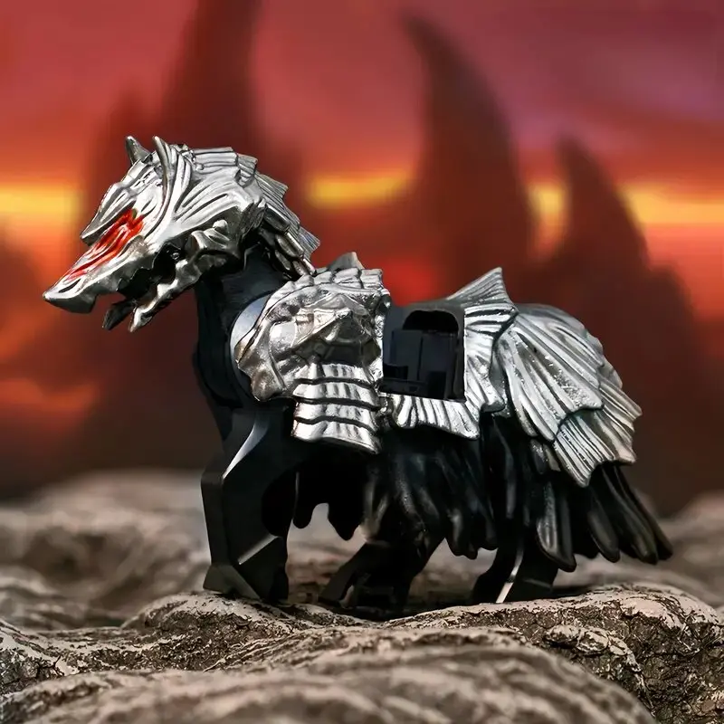 Custom Dark Knight Brick Minifigure with Armored War Steed
