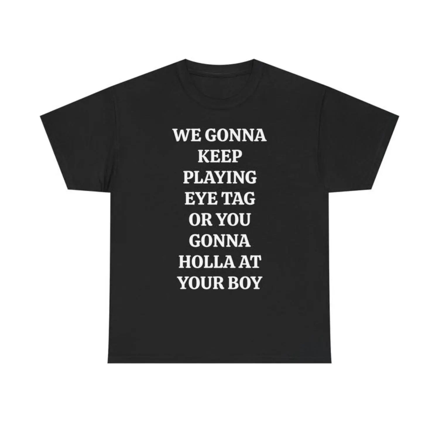 WE GONNA KEEP PLAYING EYE TAG OR YOU GONNA HOLLA AT YOUR BOY TEE - Viral Party Tee, Bars, and Clubs