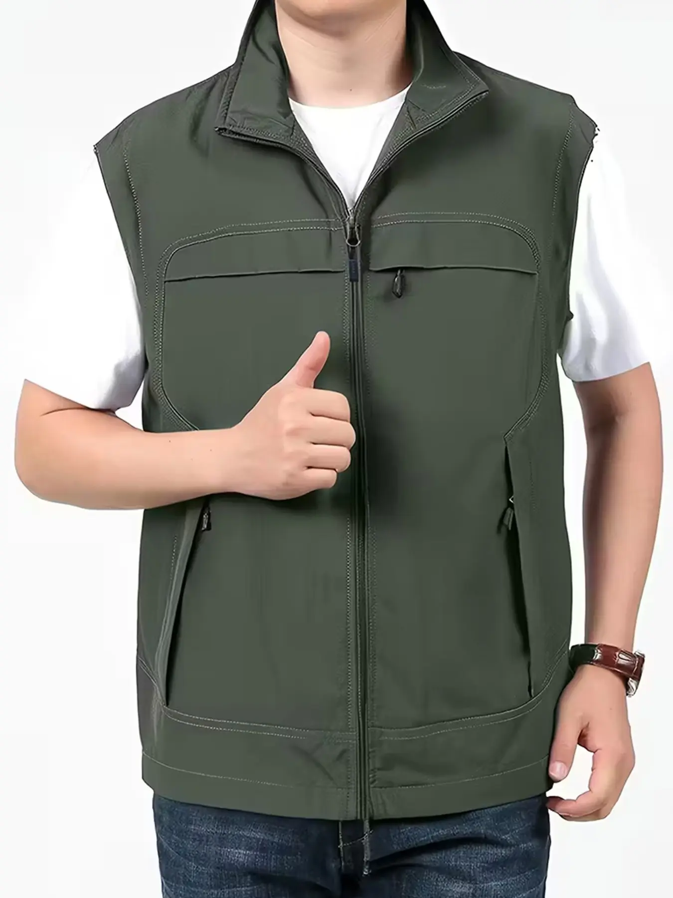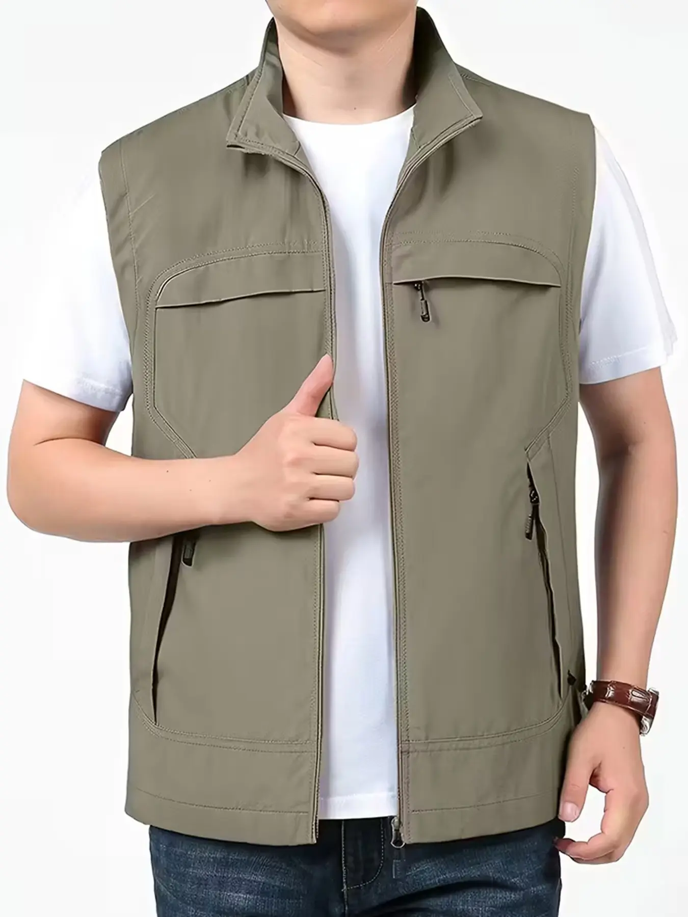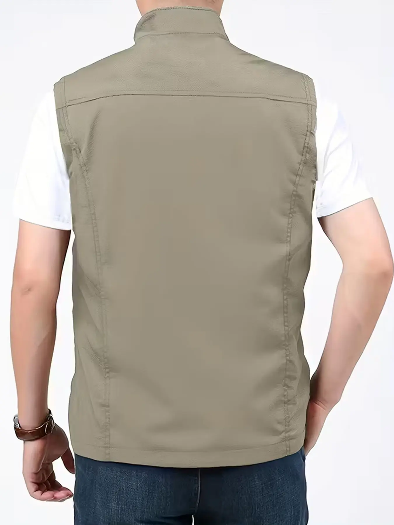 Men's Multi-Pocket Vest, Summer Lightweight Outdoor Fishing Vest, Sleeveless Casual Crop Top, Travel Workwear, Comfortable & Stylish