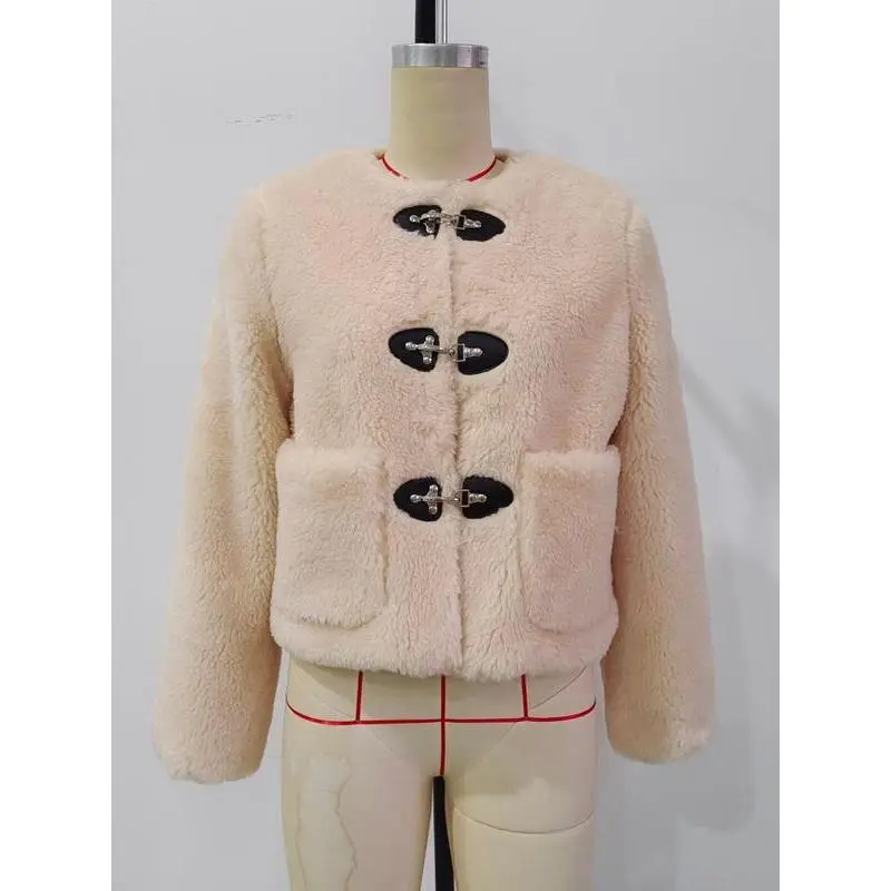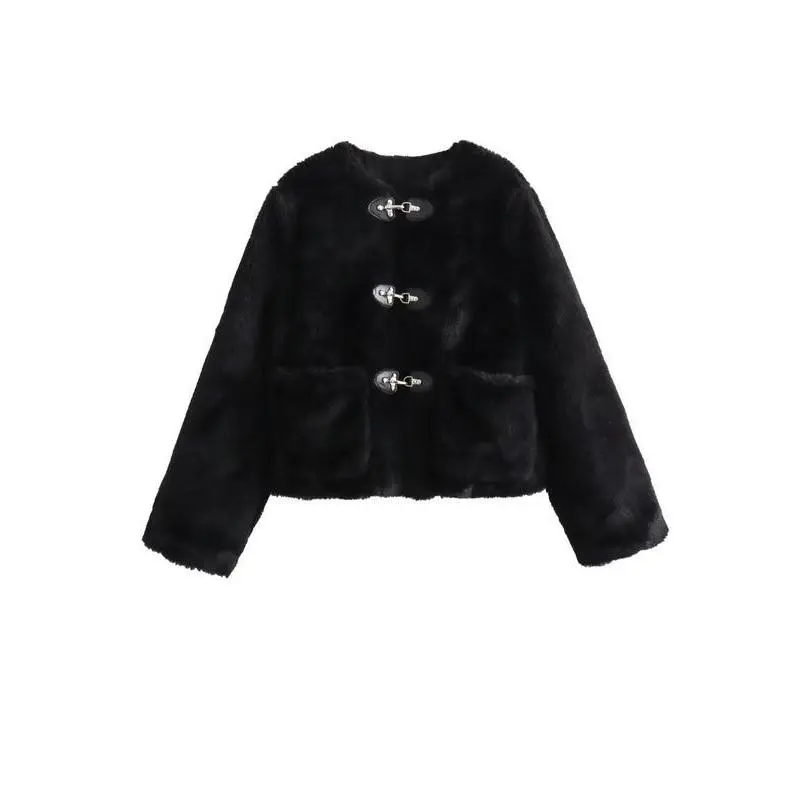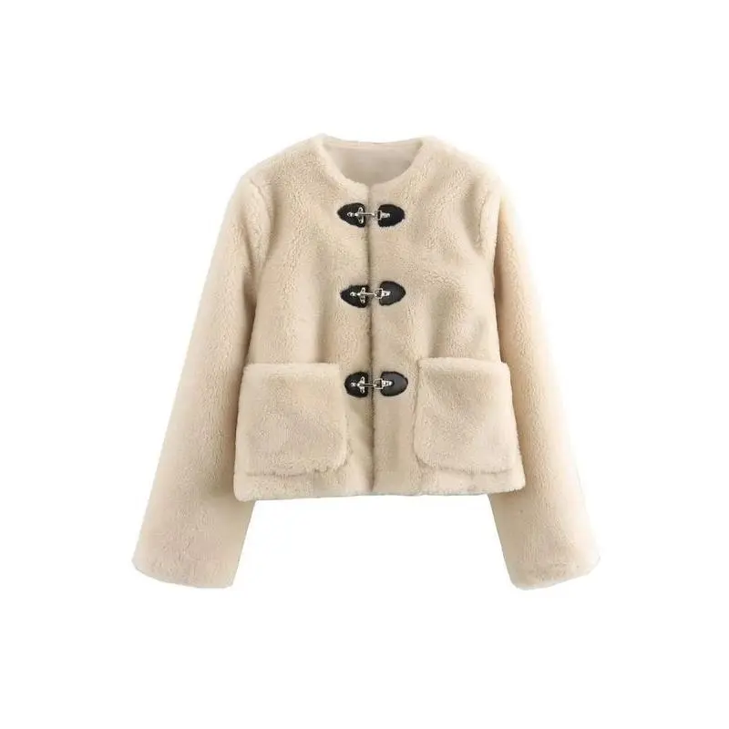 [Fleece Fabric]: Crafted from woven fleece, providing a soft texture that enhances warmth during colder seasons. [Spring Clip Closure]: Features a unique spring clip closure, ensuring ease of wear while maintaining a secure fit. [Moderate Thickness]: Designed with moderate fabric thickness, offering just the right amount of warmth for fall and winter. [Fitted Cut]: The fitted silhouette flatters the body’s natural shape, providing a tailored look for various occasions. [Long Sleeves]: Equipped with long sleeves to provide additional coverage and warmth, essential for colder temperatures.