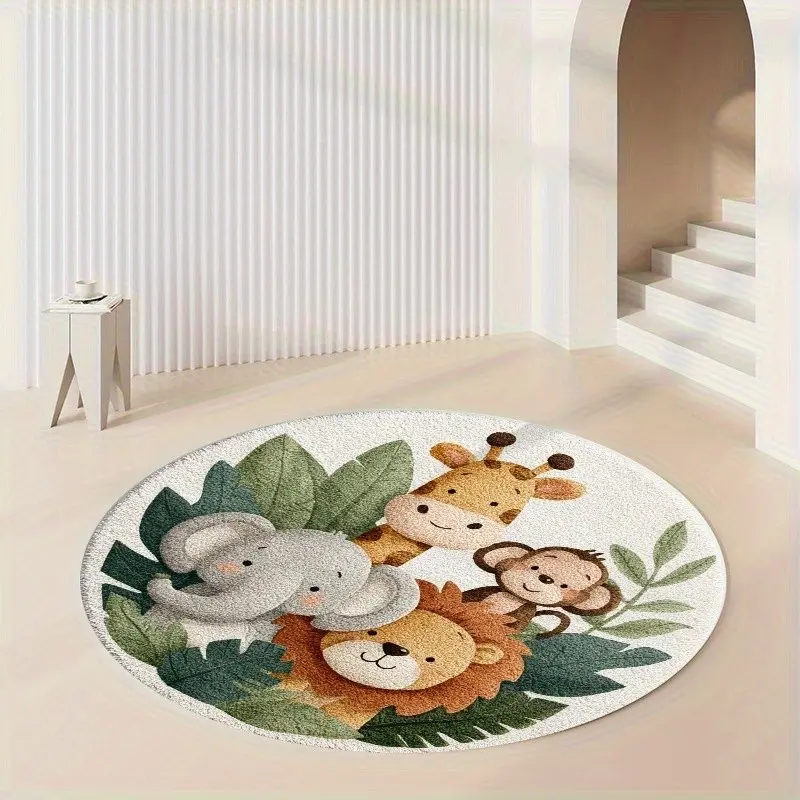 1pc Tropical Jungle Animal Round Rug, 850g/m² Velvet Material, Living Room/bathroom/nursery/yoga Mat, Simple Design, Indoor/outdoor Use, Style