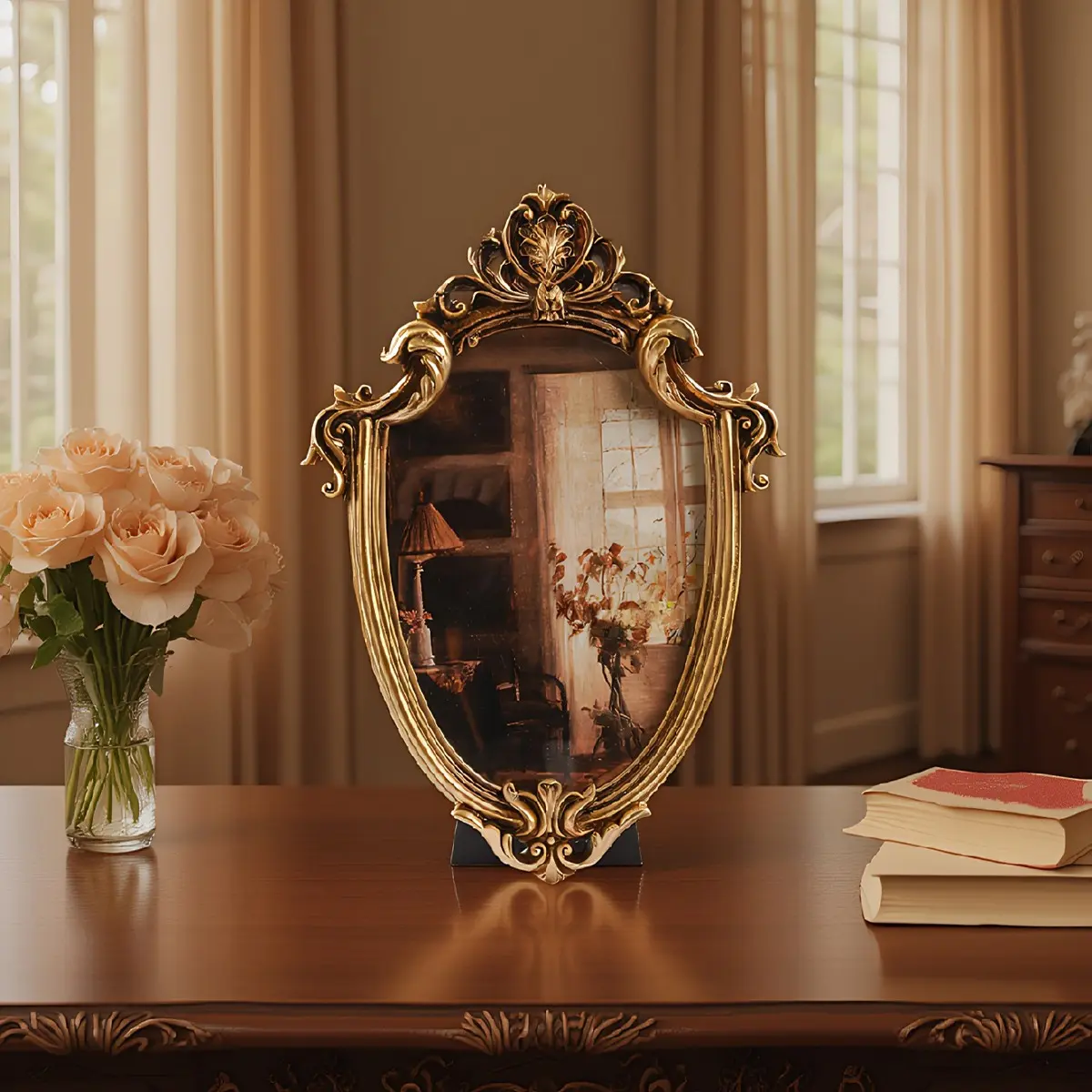 Modern Creative Resin Oval Rose Frame, Simple Home Desktop Decor, Photo Frame for Bedroom Office Study Desk
