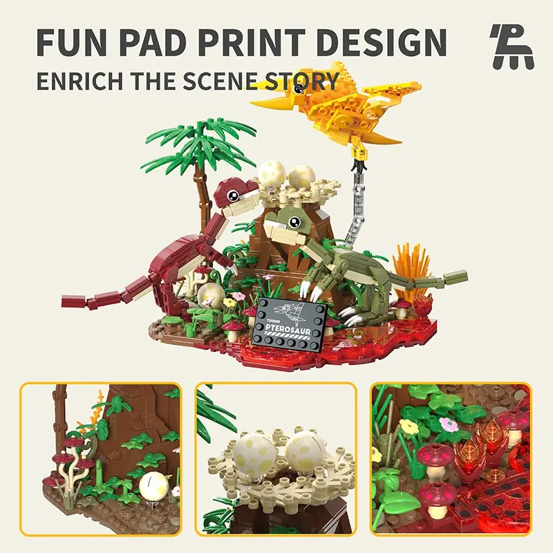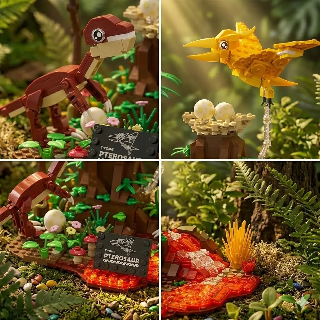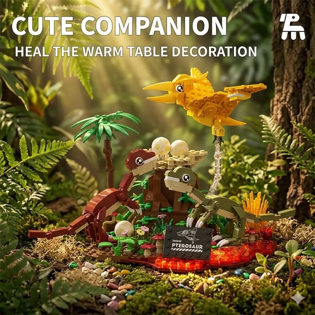 Dinosaur World Building Set, Pterosaur Bird Model DIY Creative Toy, Mini Brick Scene, Desk Decor, Fun Assembly Hobby, Gift for All Ages