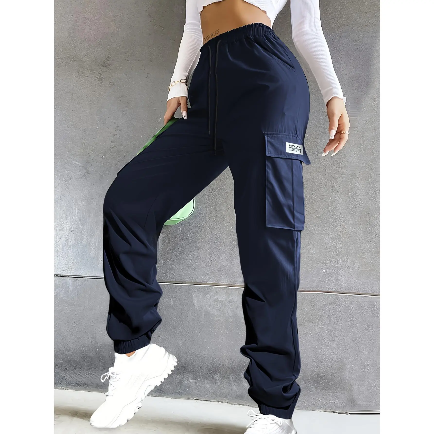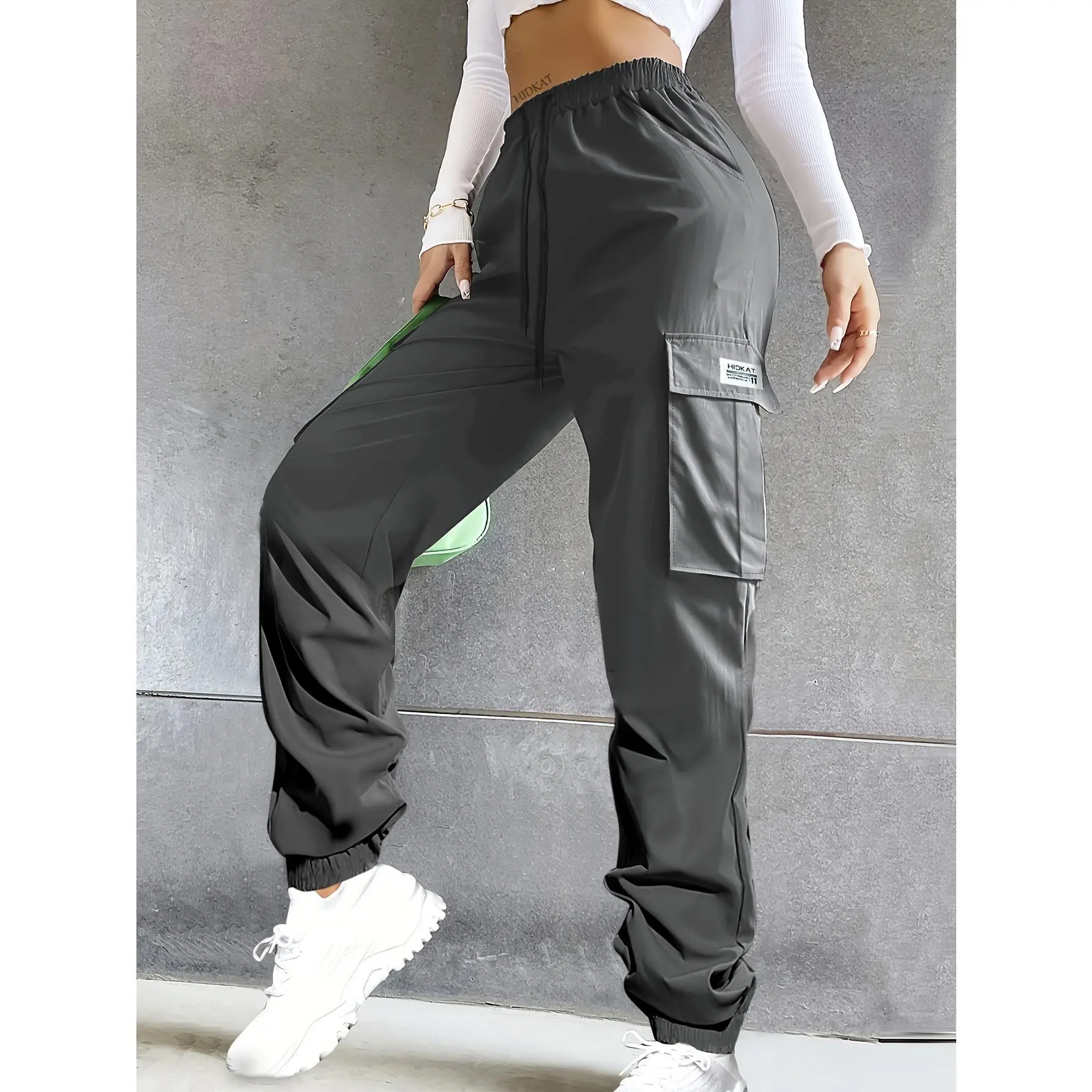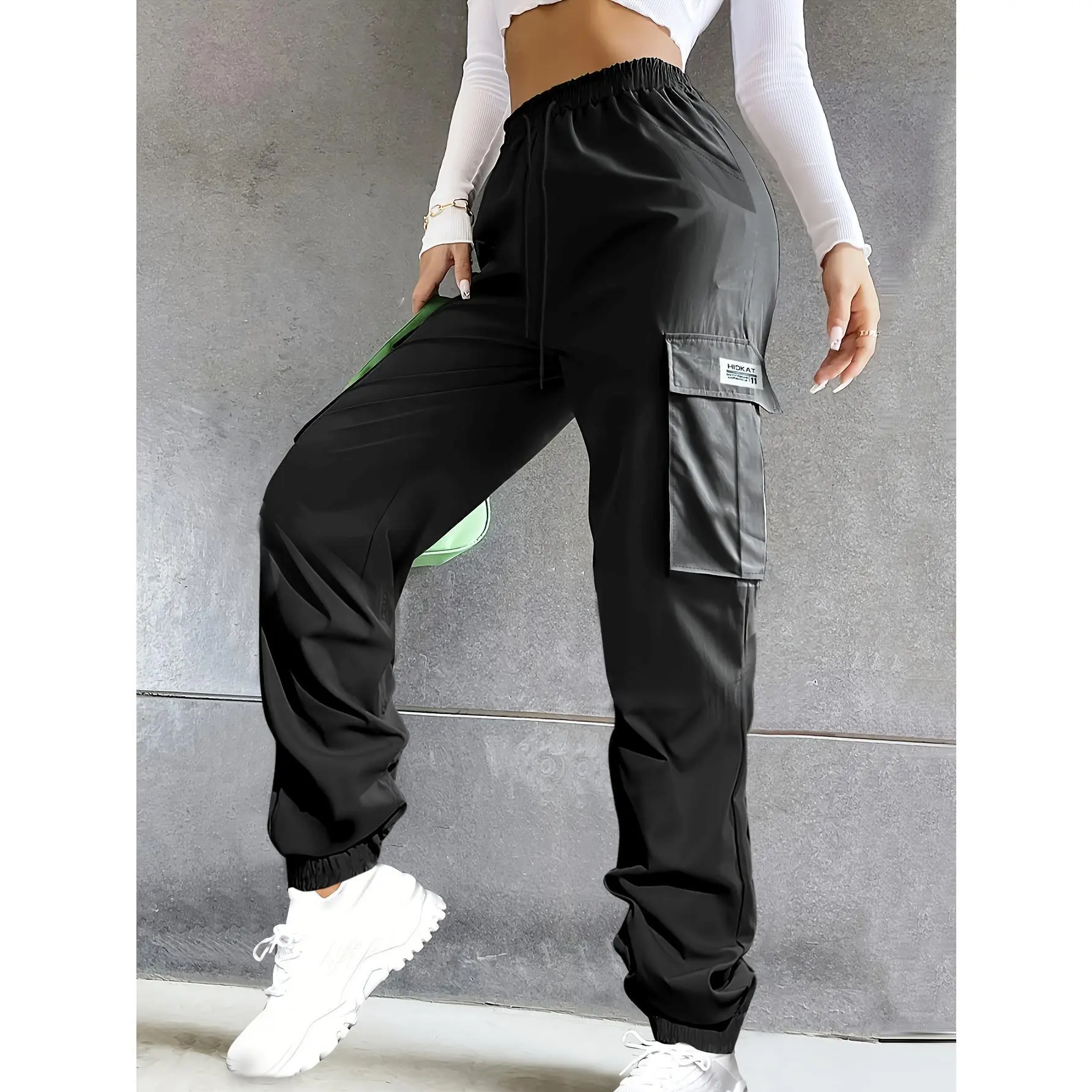 Women's Lightweight Cargo Pants - Elastic Drawstring Waist & Spacious Utility Pockets | Regular Fit Streetwear Trousers for Everyday Comfort | All-Season Breathable Fabric (Solid Colors, Relaxed Fit)