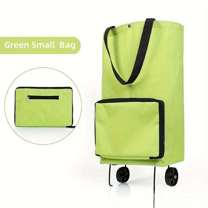 With this foldable wheeled shopping bag, shopping and carrying loads have never been easier—it is your ultimate all-in-one solution for grocery runs, errands, and short trips. Featuring built-in wheels, it transforms quickly and effortlessly from a compact tote bag into a convenient rolling cart with just a simple motion.