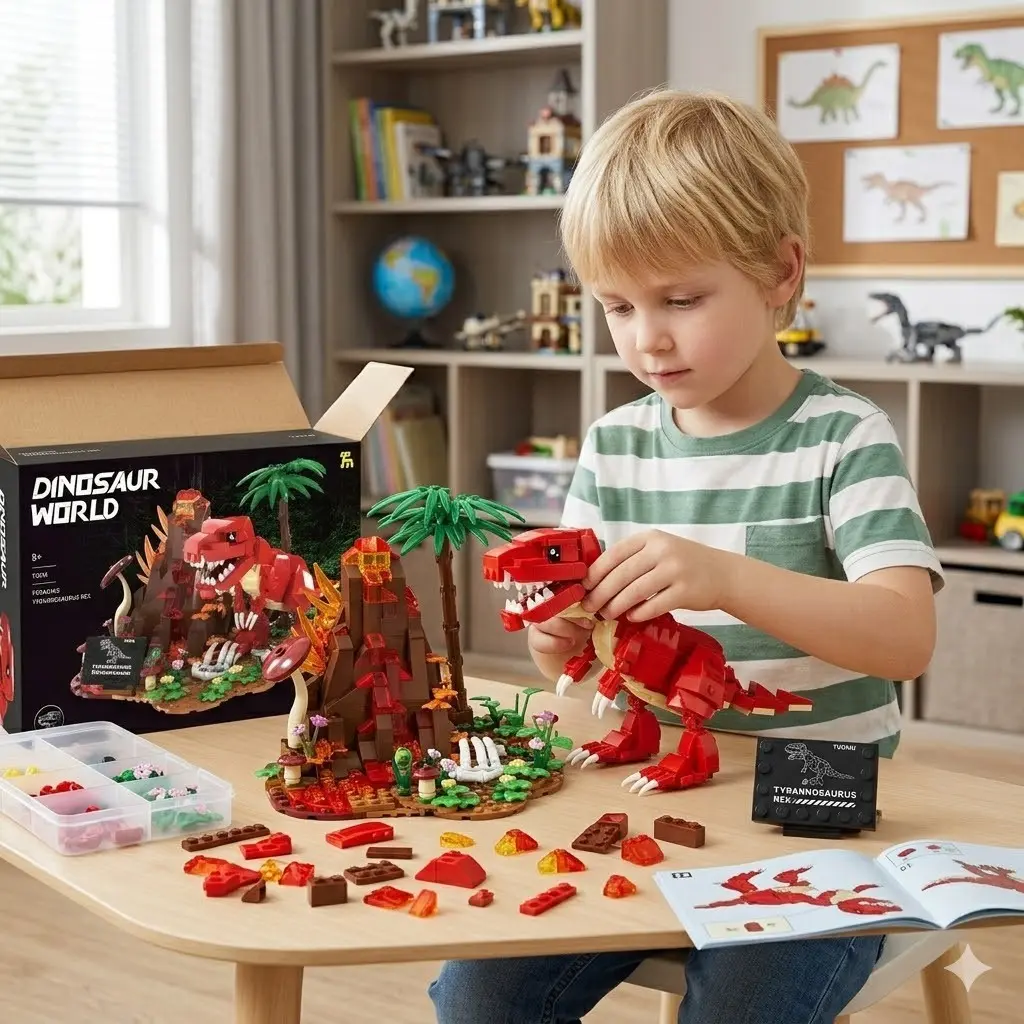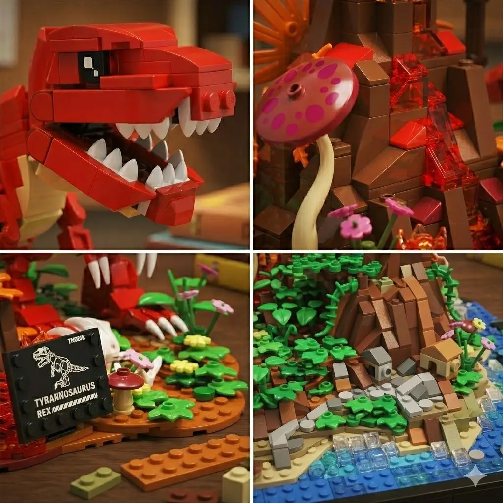 Dinosaur World Building Set Tyrannosaurus Rex & Volcano Scene Dinosaur Park Stem Creative Toy Easter Spring Children Gift Boys Girls Home Office Decor Collection