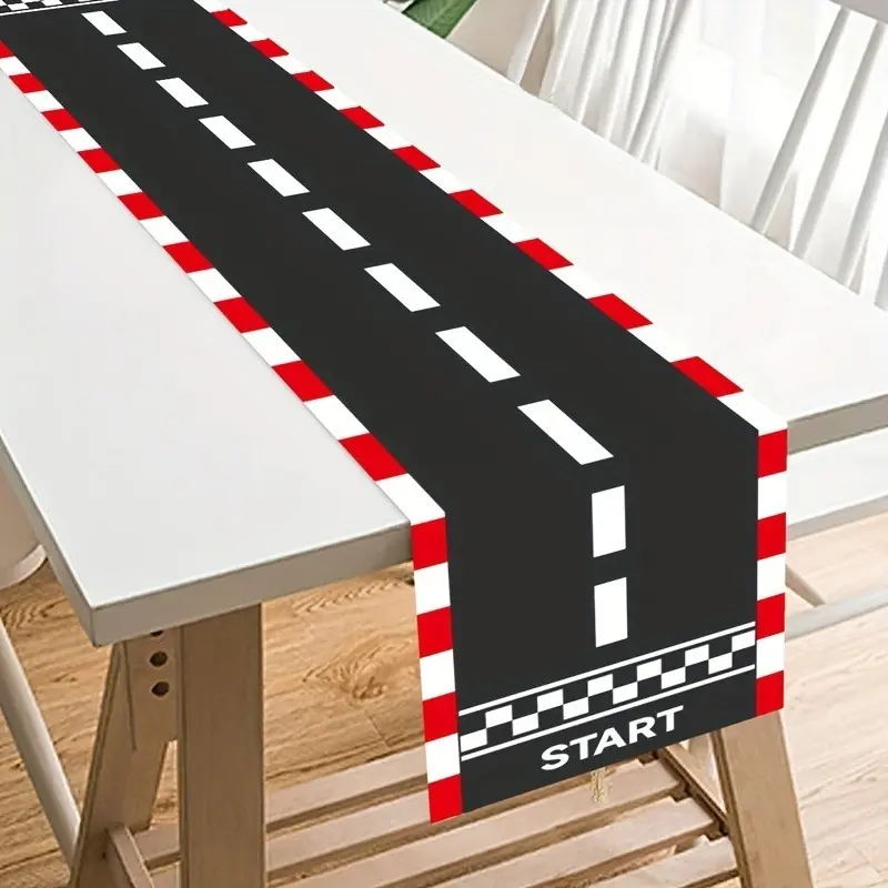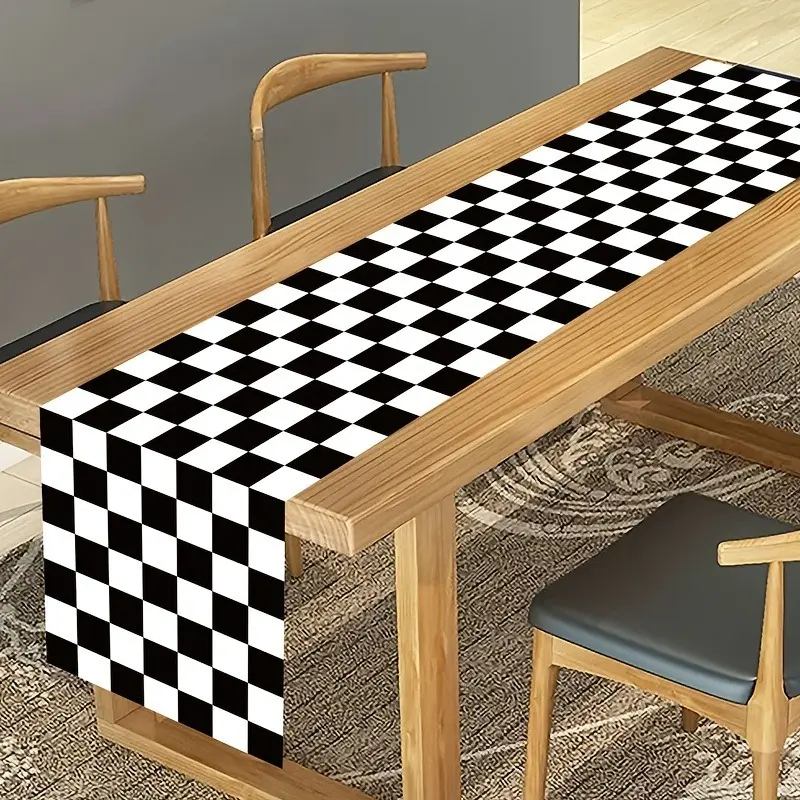 1 piece, racing track fashion table runner, rectangular black and white checkered racing track table runner tablecloth – racing party tablecloth decoration