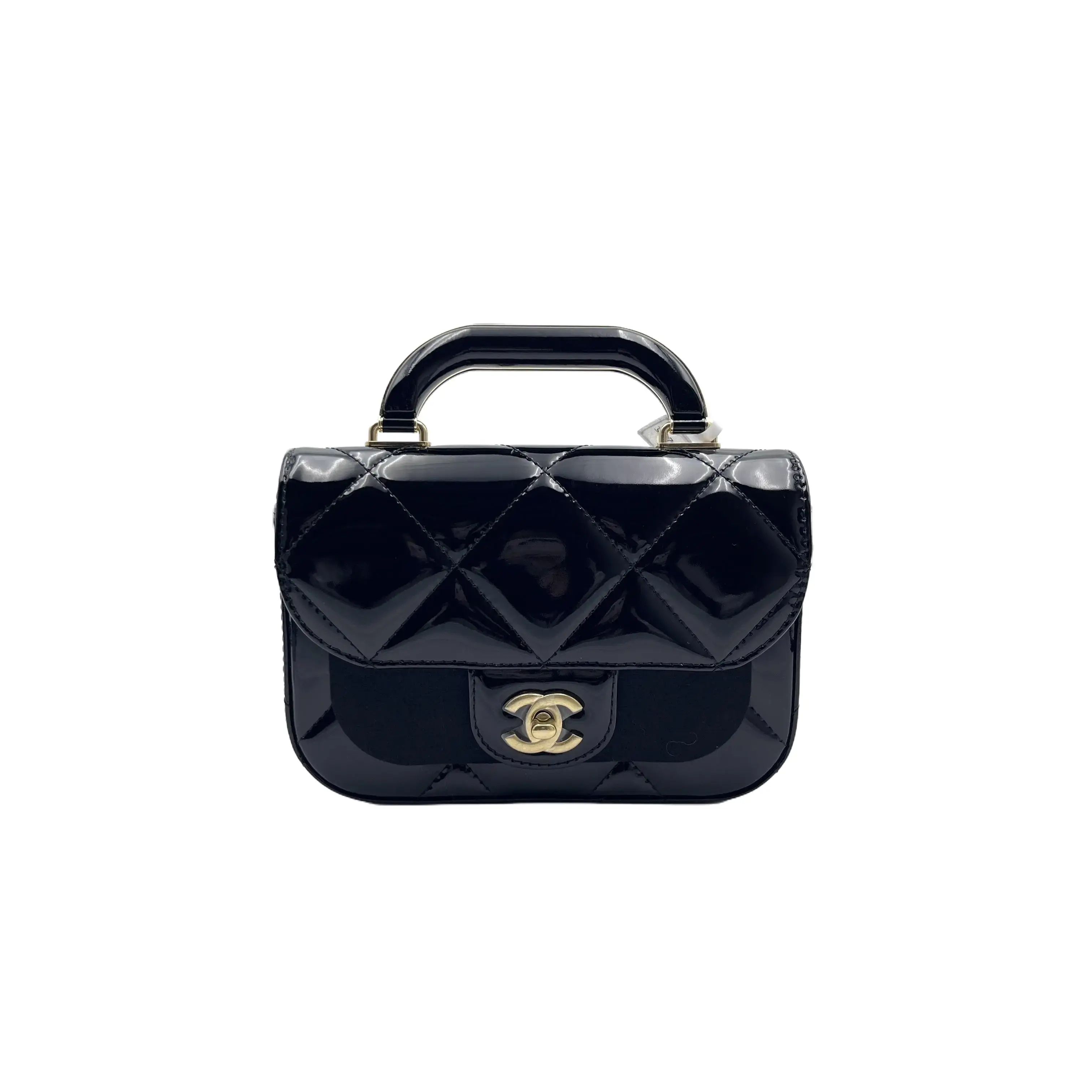 Pre-owned CHANEL Autumn/Winter Collection Mini Classic Leather Top Handle Bag Black/Gold H6 H21294260