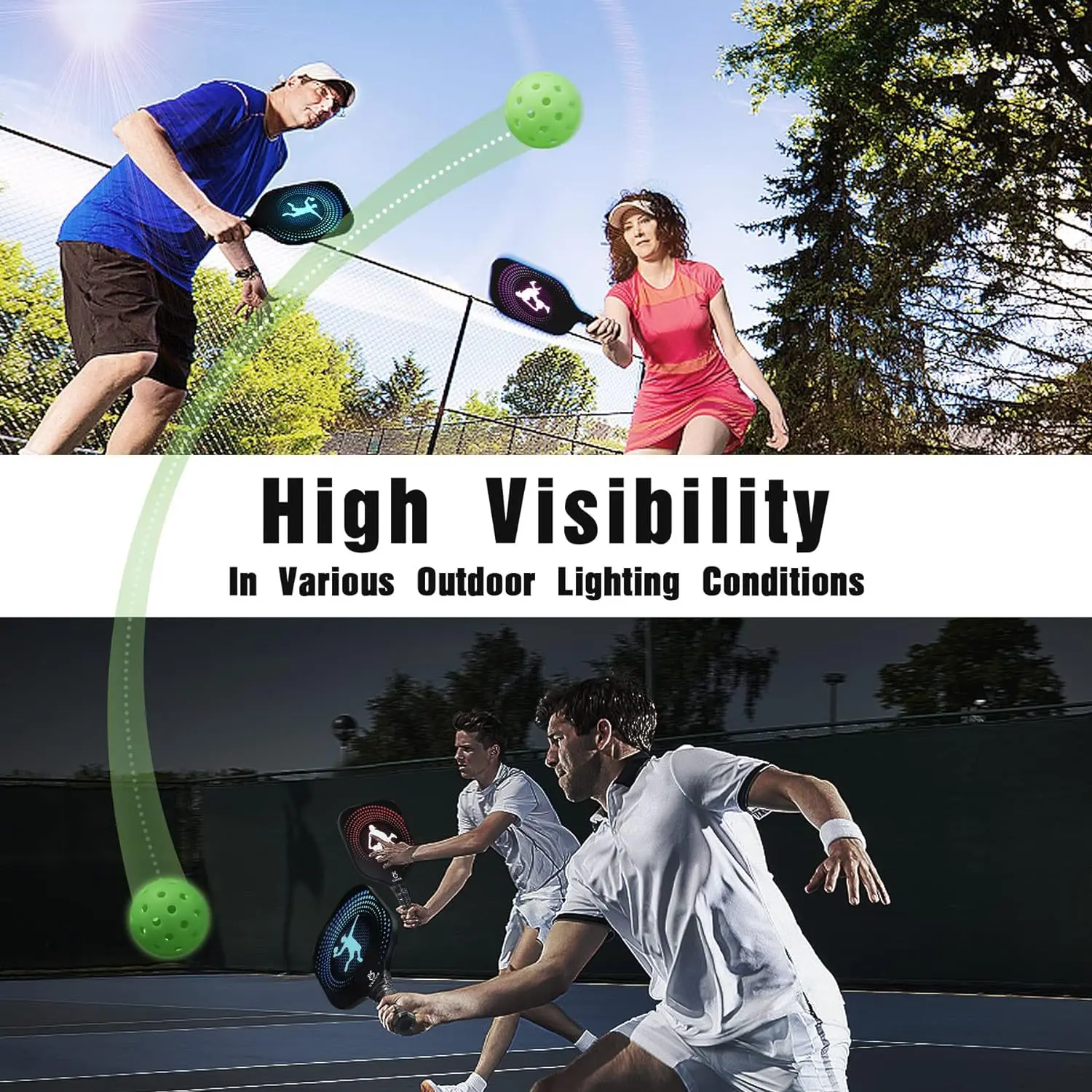 Pickleballs 40 holes, fluorescent glow-in-the-dark pickleballs, high elasticity, for night training