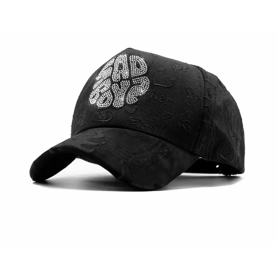 Dandy Hats x Junior H "Sad Boyz" Premium Streetwear Snapback – Black Adjustable Unisex Hat for Men & Women Featuring Rhinestone Script Embroidery and a Dark Urban Design Inspired by Modern Street Fashion