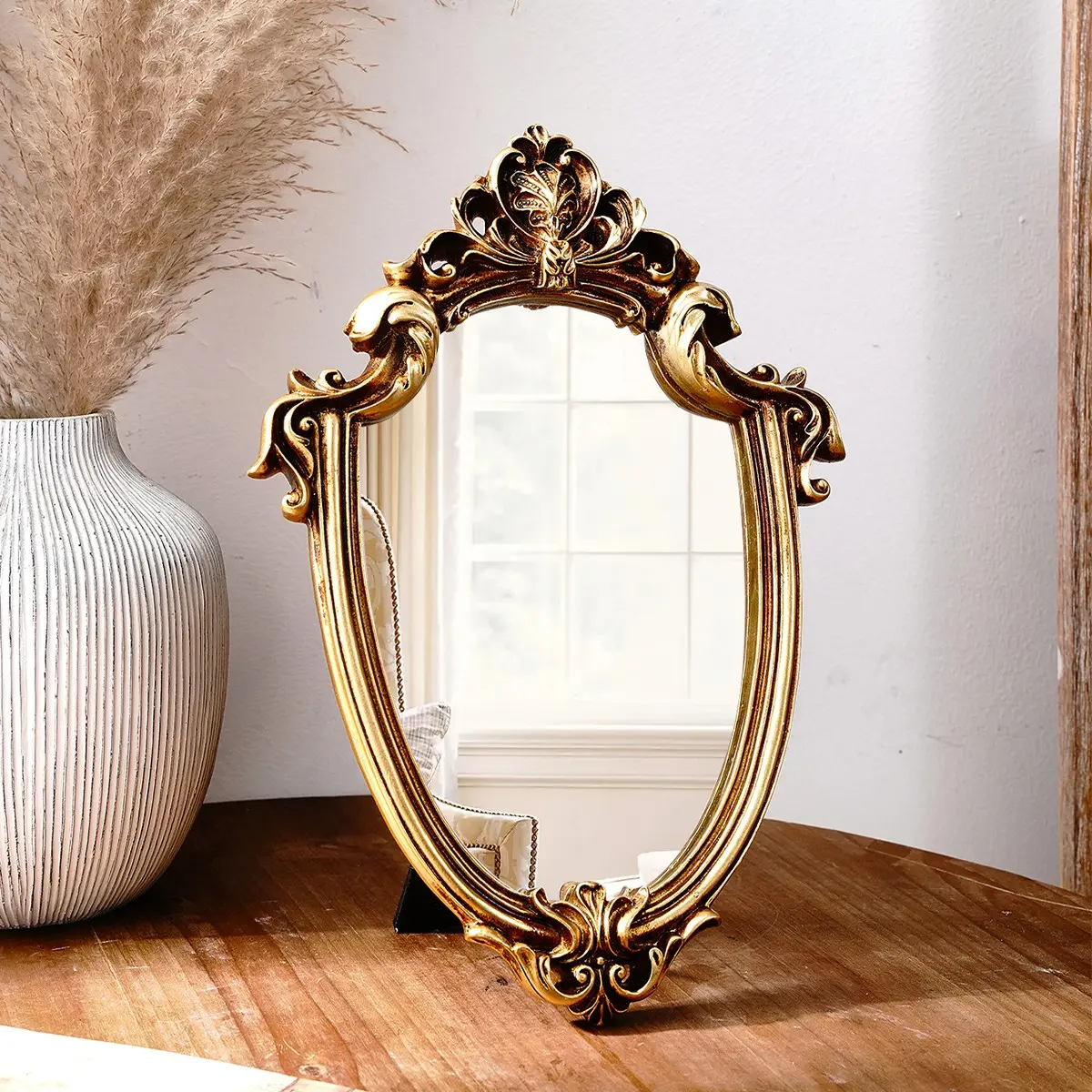 European Classical Gold Pattern Mirror Decorative Ornament, Wall-Mounted or Tabletop, Home Wall Decoration, Vanity Mirror