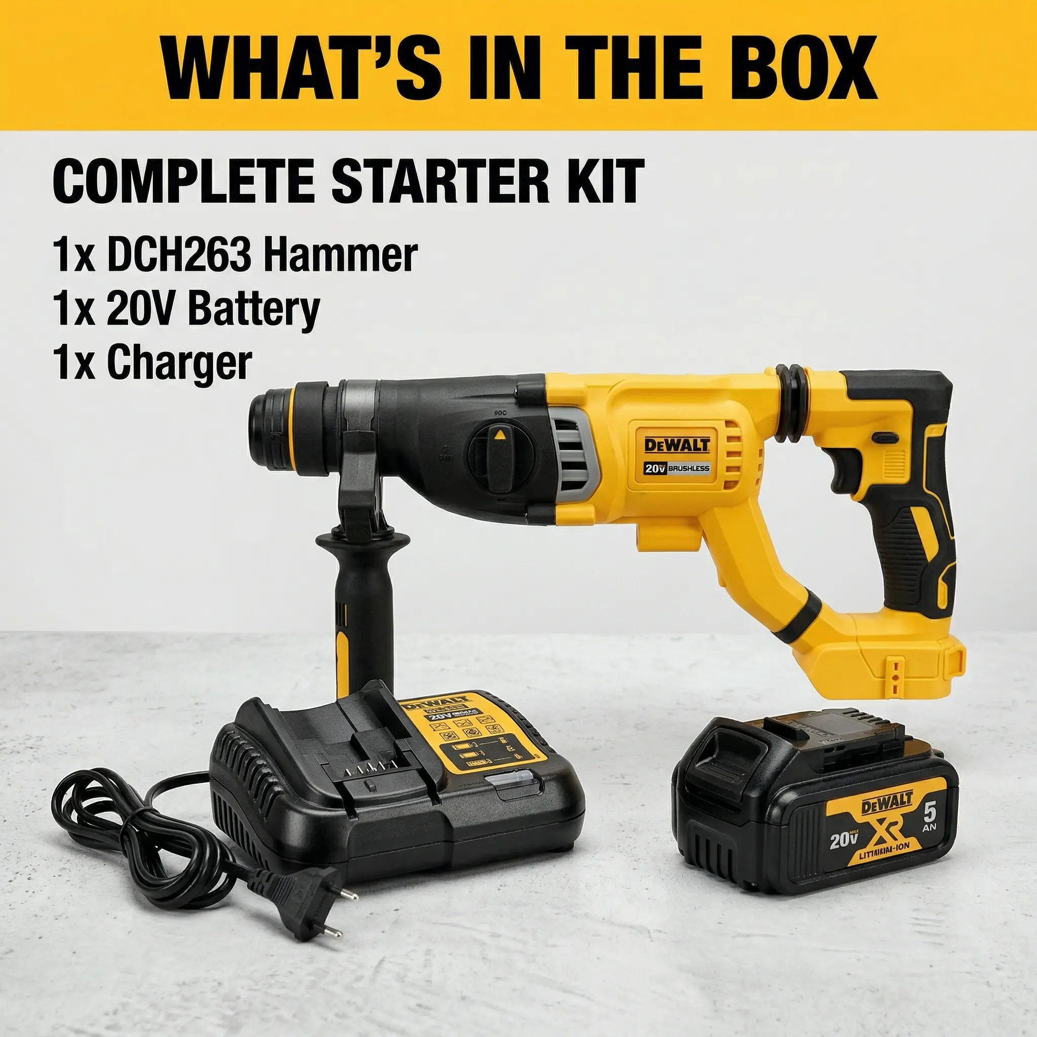 Dewalt DCH263 20V Brushless Rotary Hammer Kit – 3.0J Impact Energy for Concrete Drilling Up to 28mm – Variable Speed Trigger with 0-4300 BPM
