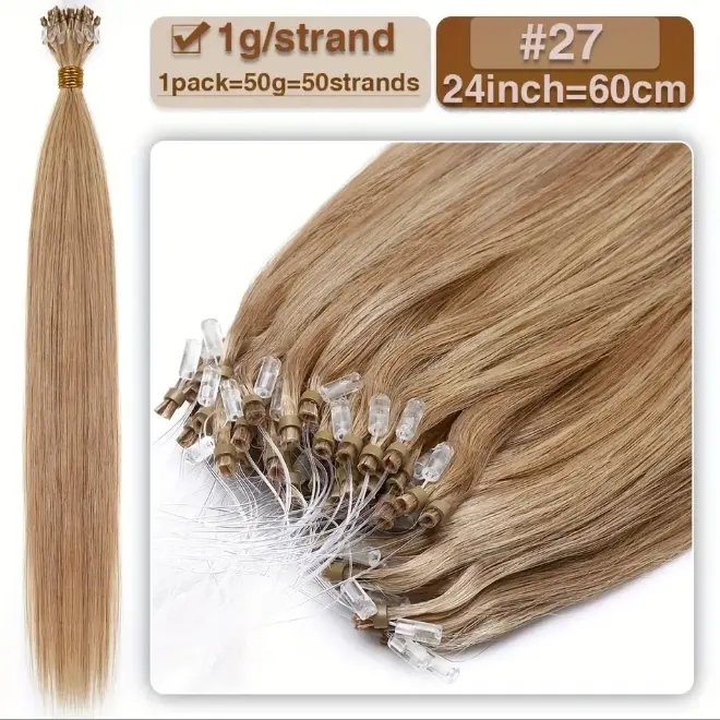 50Pcs Micro Loop Human Hair Extensions, 1g/Strand 50g Total, 100% Remy Hair, Natural Black #1 with Blonde Highlights, 12-28 Inches Straight Smooth, Seamless Beads for Protective Styling