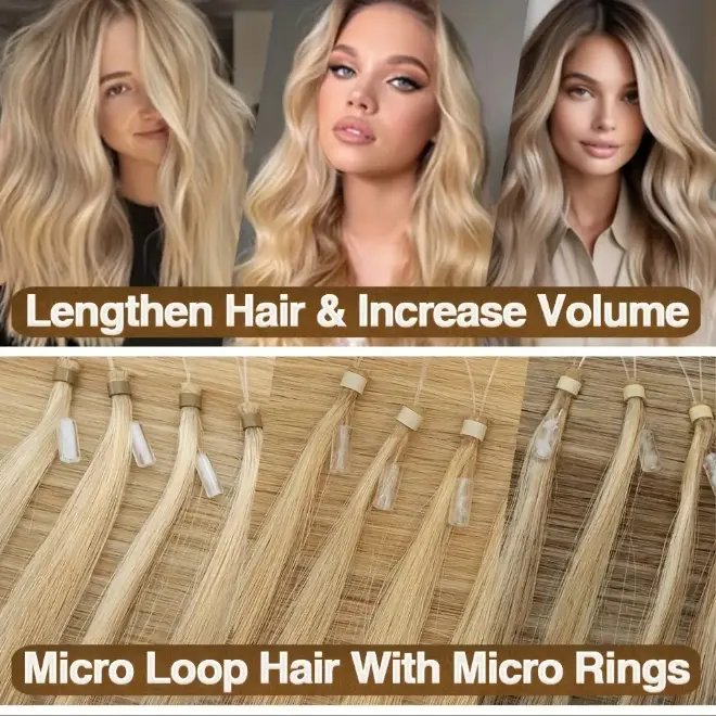 GOO GOO Micro Link Hair Extensions Real Human Hair 14-24Inch 50g-50s/30g-25s, Cold Fusion, Invisible Remy Hair, Glueless Micro Loop Micro Ring Hair Extensions Silky Straight Natural Micro Bead Hair Extensions#SummerVibes