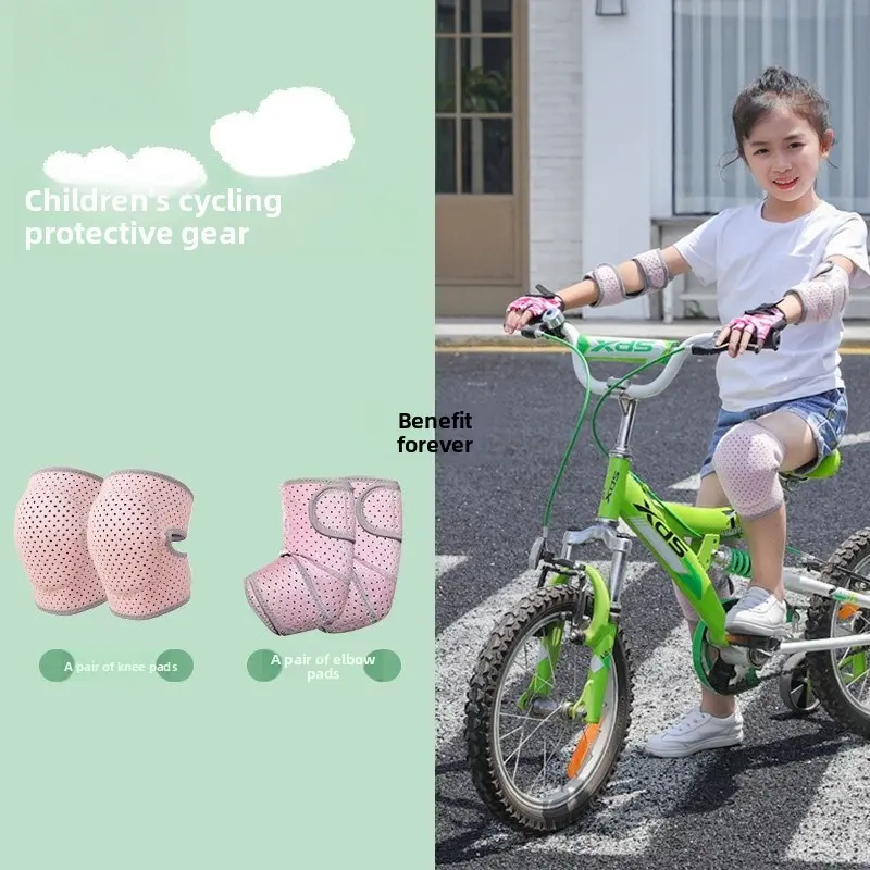 Knee pads + elbow pads + gloves pink six-piece set