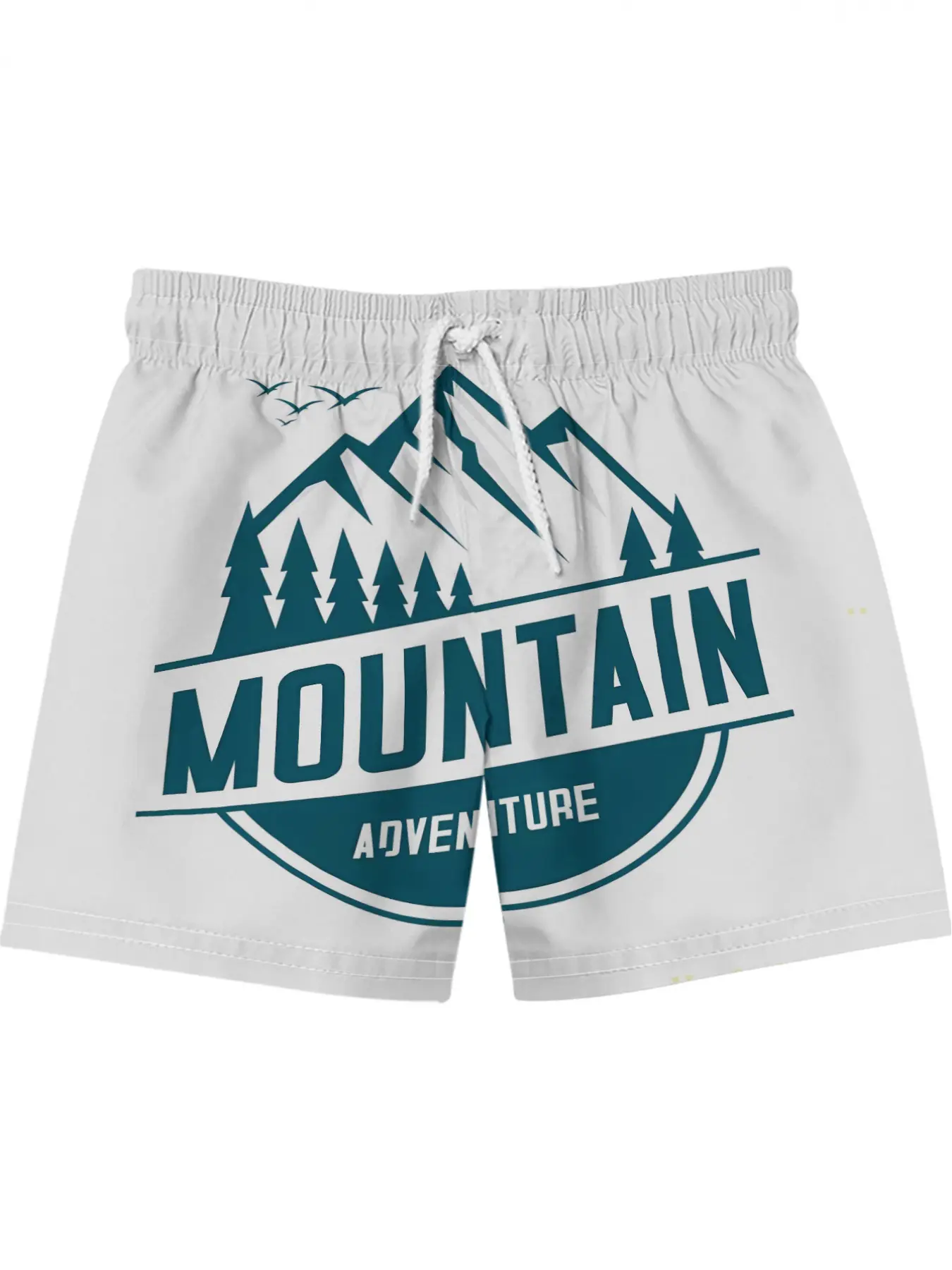 Men's Beach Shorts - Flat Digital Print Pattern - No Texture - Mountaineering Adventure Logo, Summer Beach Swimming Shorts with Elastic Waistband and Drawstring, Loose Fit, Lightweight, Perfect Gift for Easter, St. Patrick's Day, Father's Day, Ideal for S