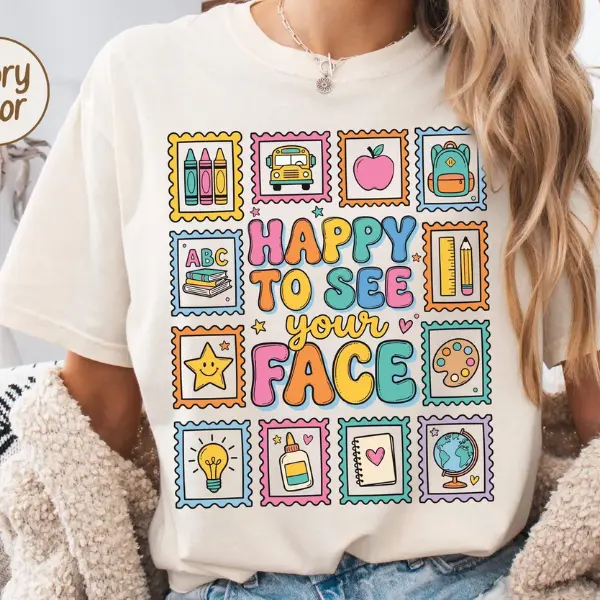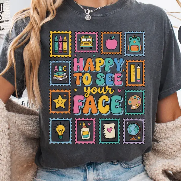 Comfort Colors Teacher Shirt, Happy To See Your Face, Back To School Elementary Tee