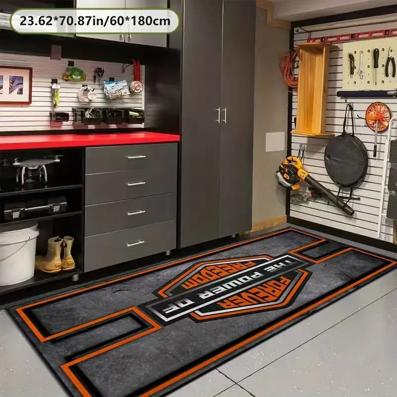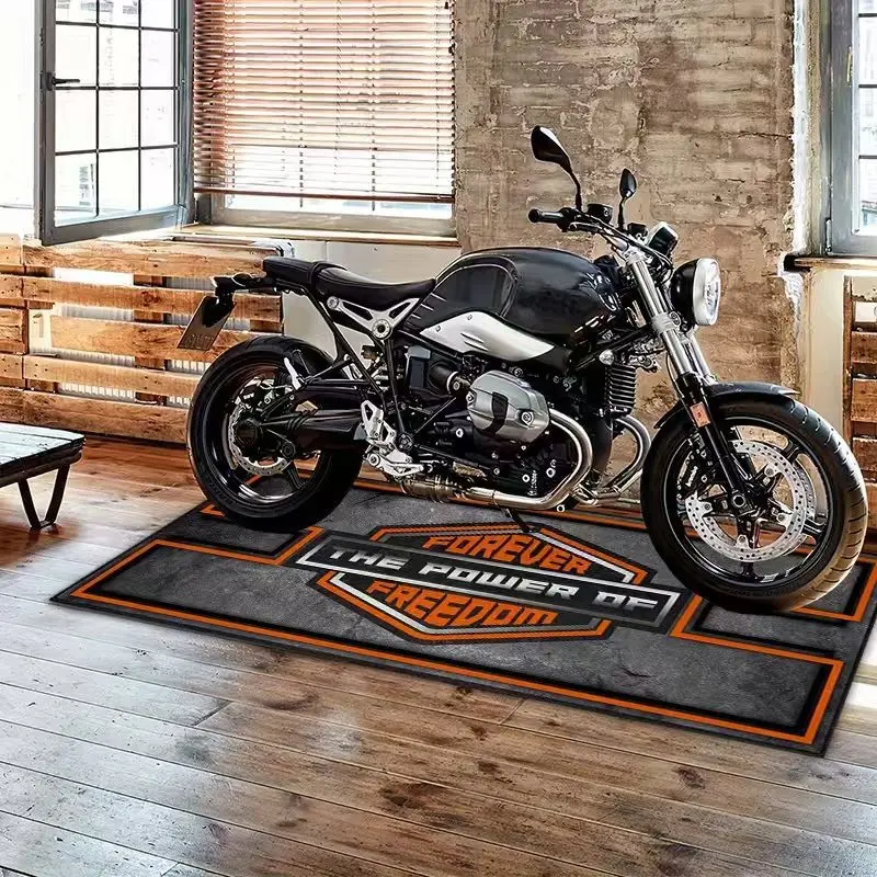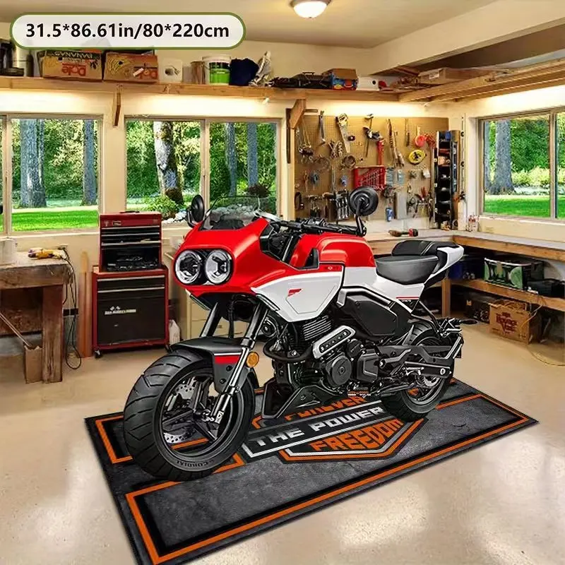 Tufted Motorcycle Garage Rug, Modern Print Design, Easy Clean Material, Ideal for Indoor/outdoor Use, Perfect for Motorbike Enthusiasts