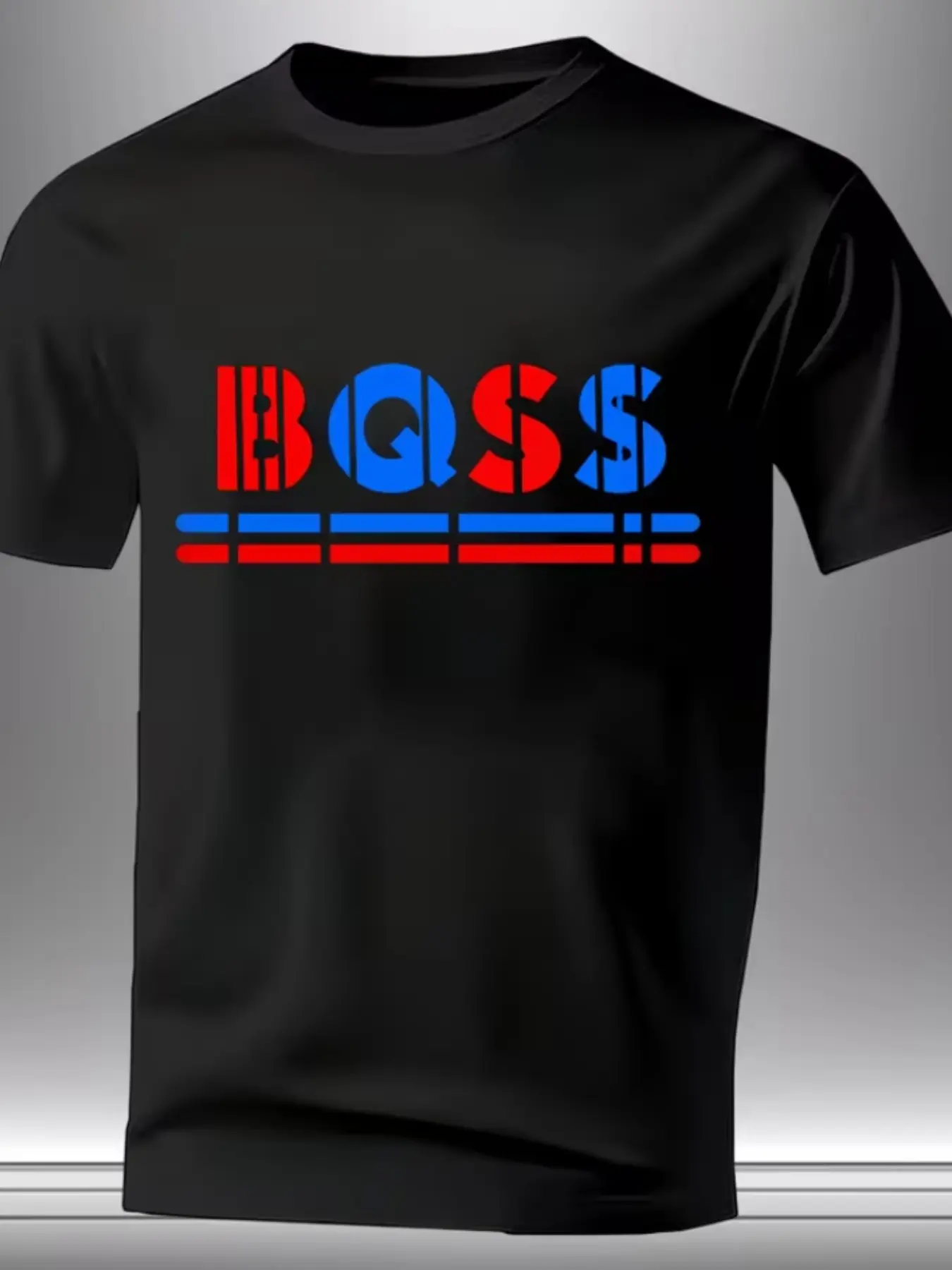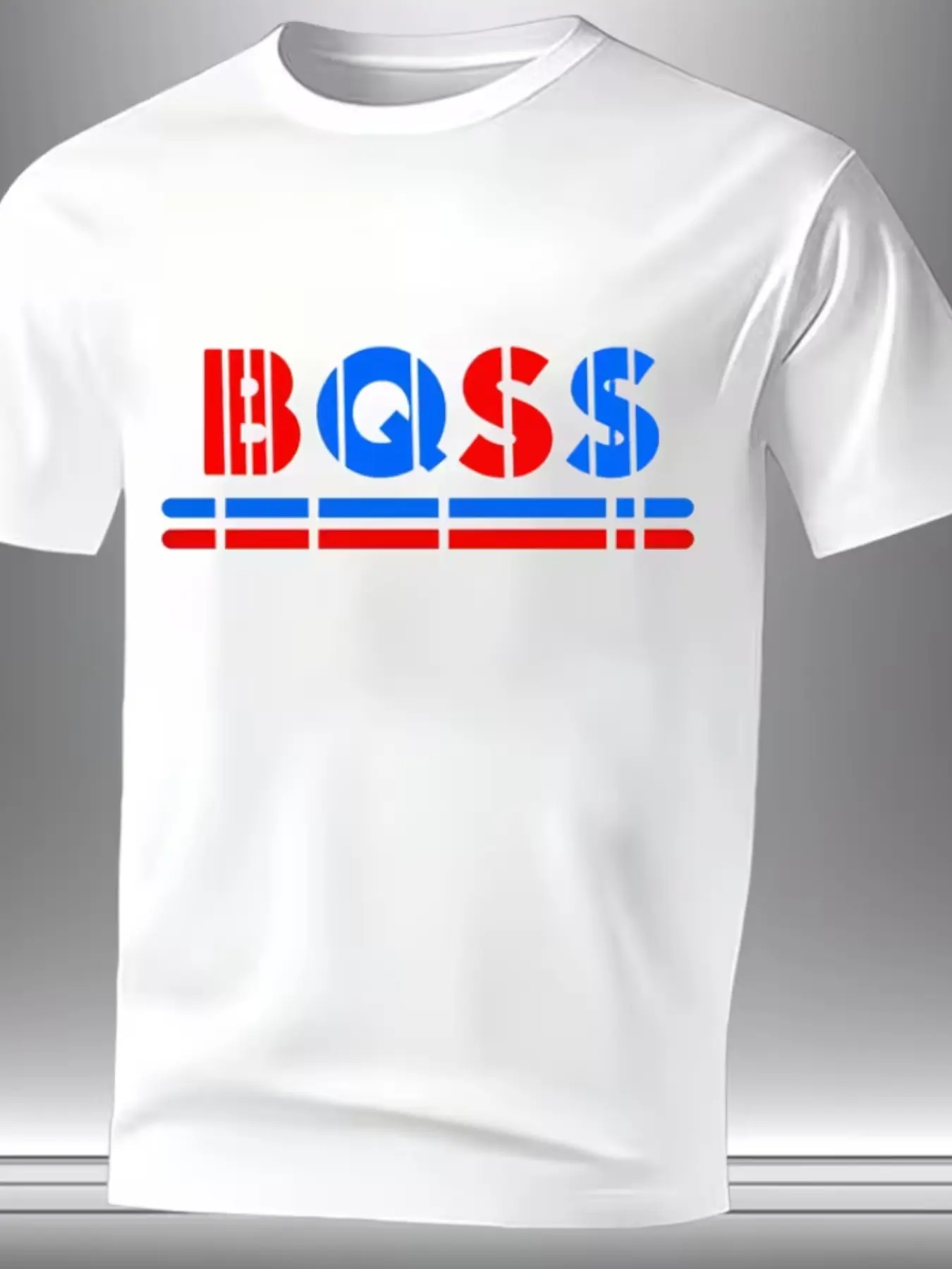 New Year Men's Round Neck Short Sleeve, Blue Striped Pattern, Modern Style, Casual Wear, Multiple Colors Available