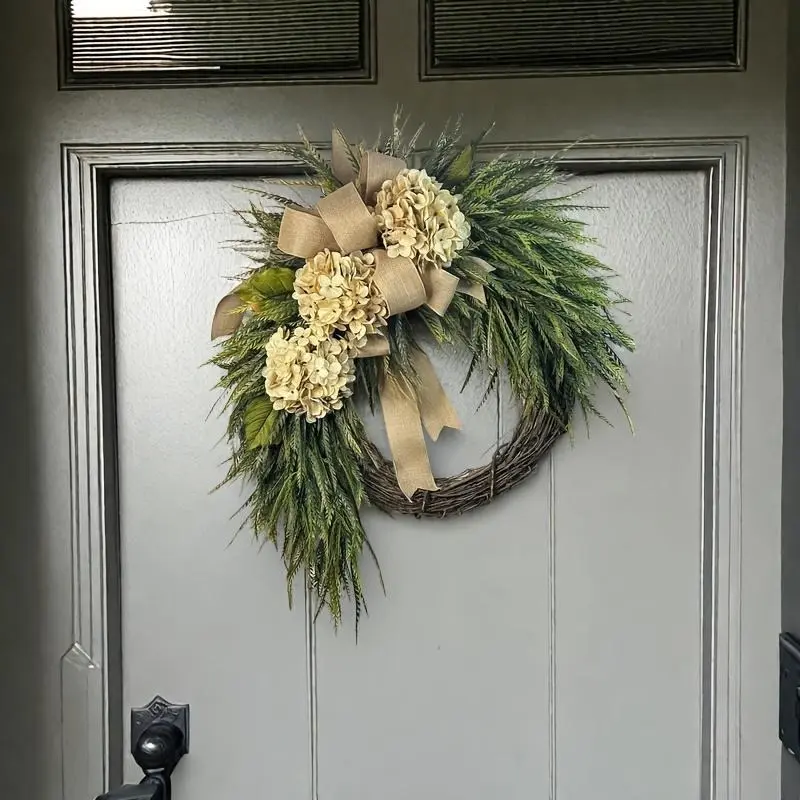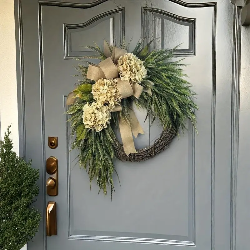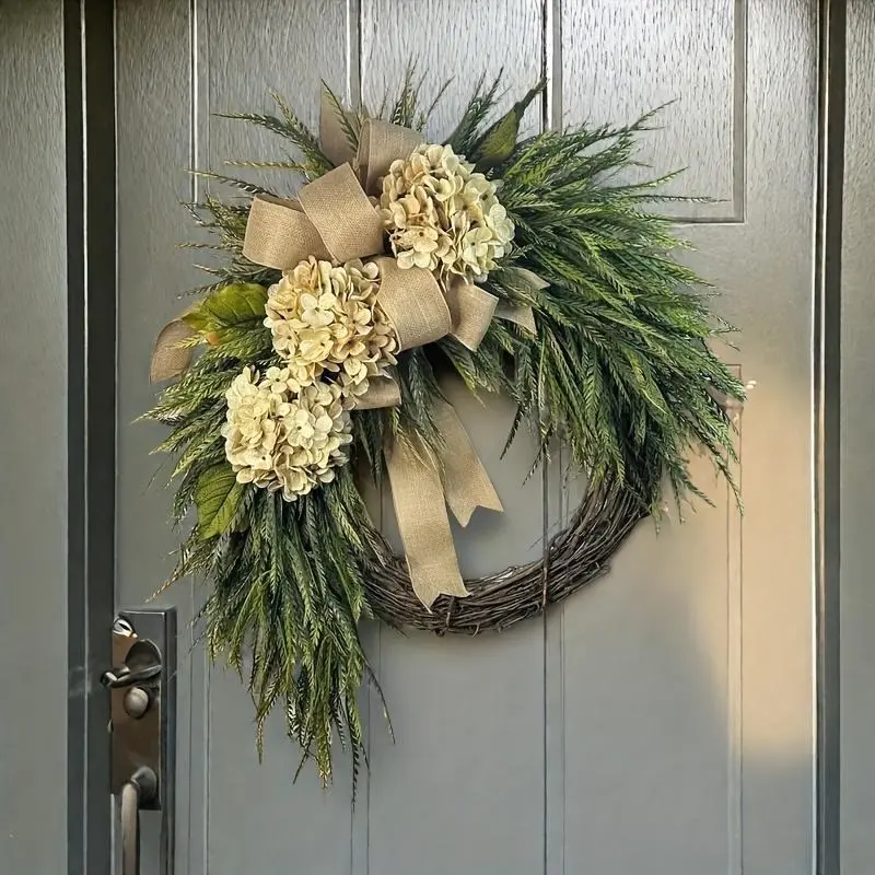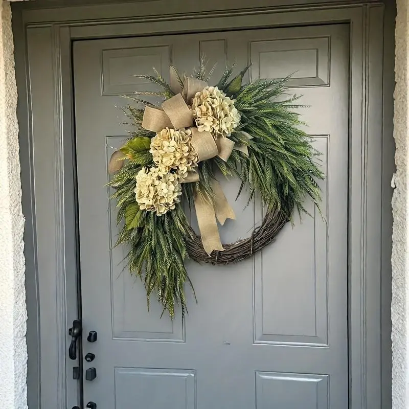 Tired of switching out wreaths for every season?Say hello to your new year-round staple: our lush artificial hydrangea & eucalyptus wreath, with a dreamy elegant bow that ties the whole rustic vibe together.No wilting, no watering, no maintenance-just endless, effortless elegance for your front door, porch, or living room wall.