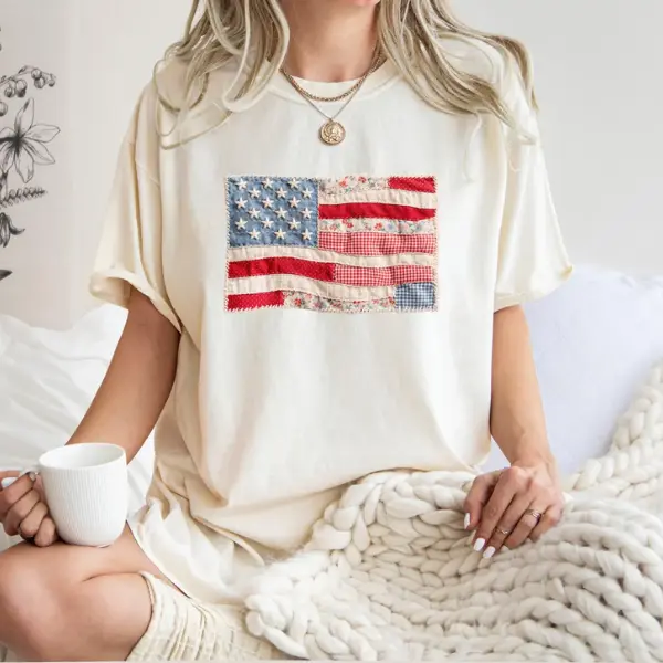 Comfort Colors Retro American Flag Shirt, Faux Patchwork USA Tee, 4th of July Shirt, Patriotic Graphic Shirt, Fourth of July Shirt