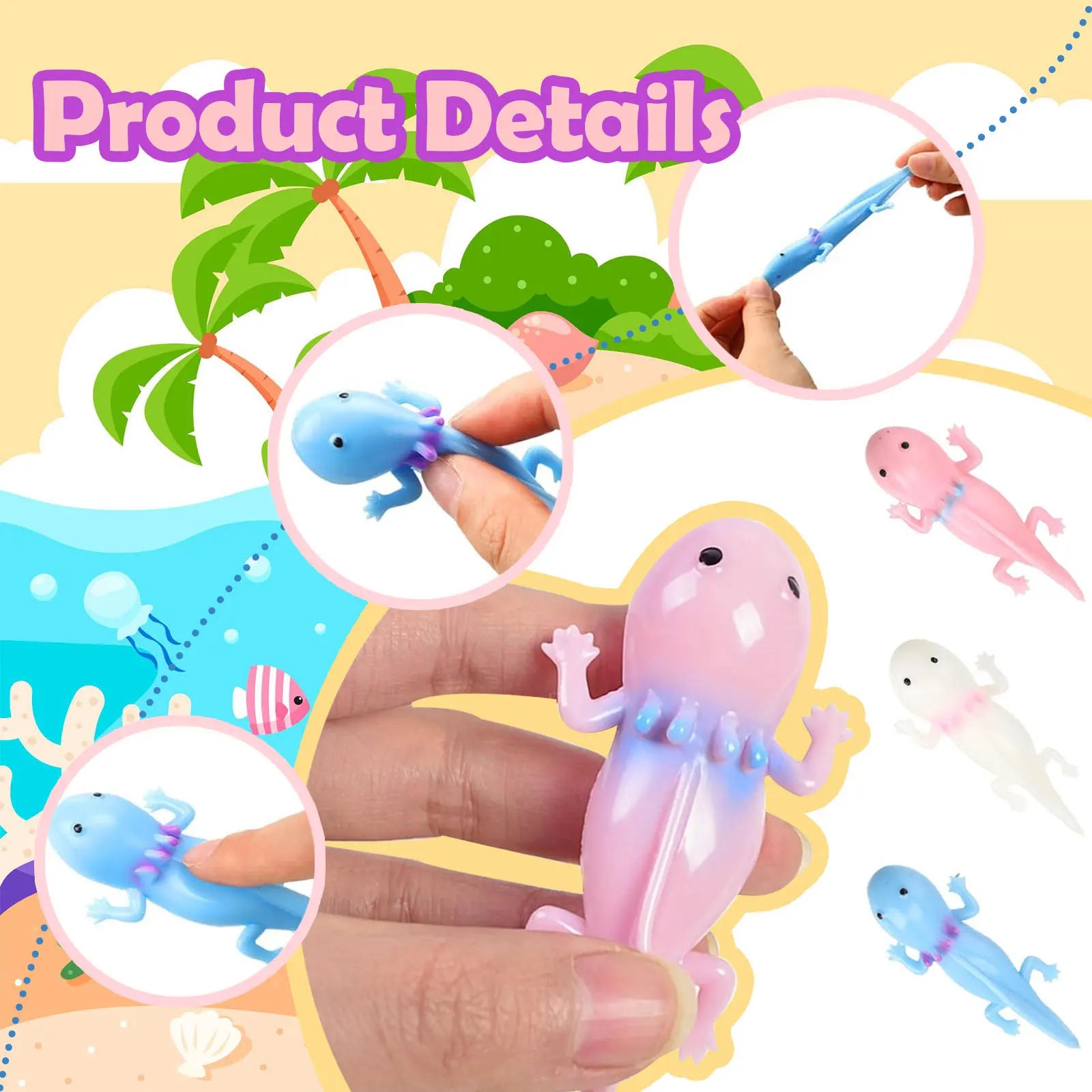 • 24PCS Slingshot Axolotl Salamander Finger Toys are ideal for parties and gifts. These squishy toys are perfect for birthdays, Easter baskets, and holiday gifts. They add a fun twist to goodie bags. 🎁