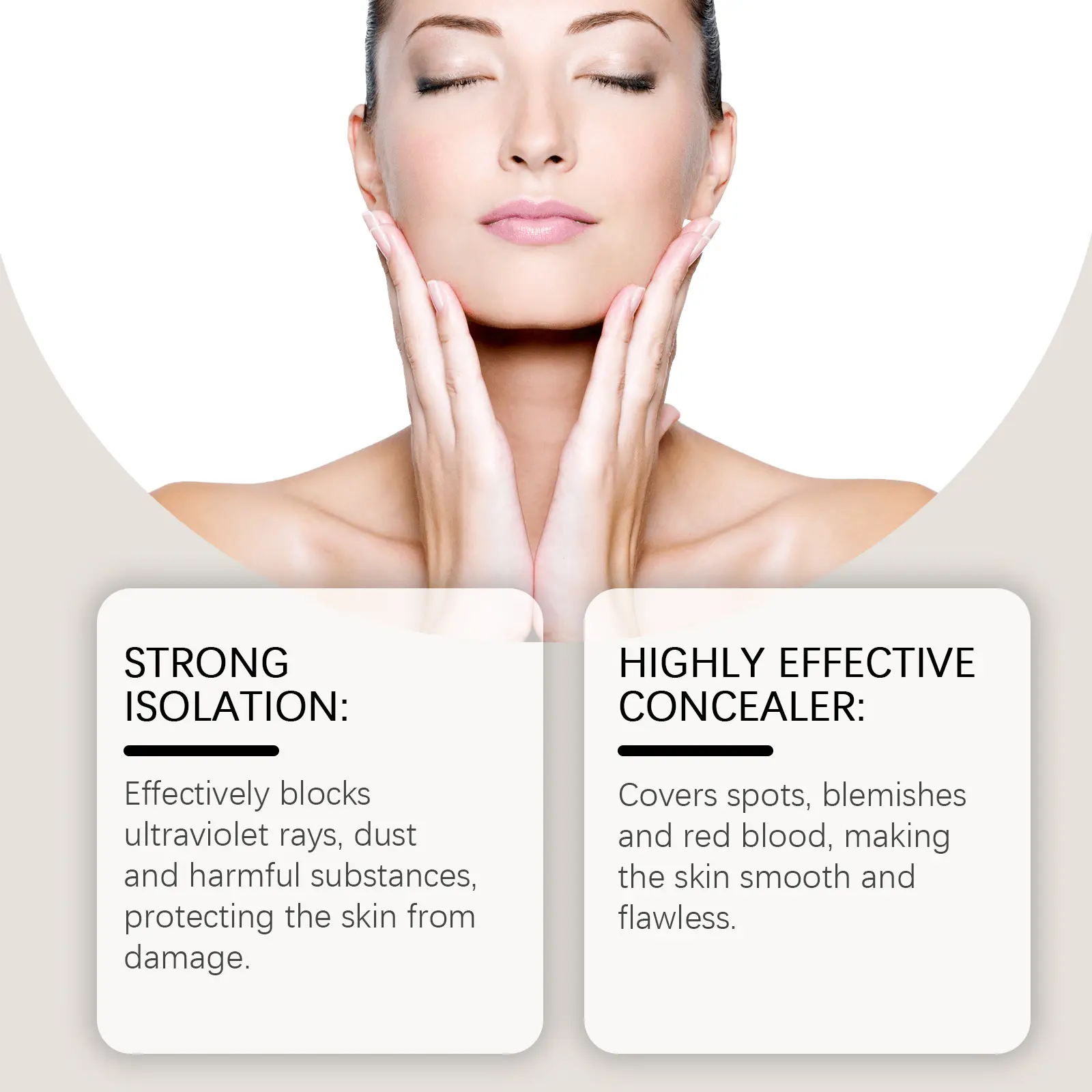 🎨 Three‑Color Brightening & Protection – Evens skin tone, brightens complexion, covers spots & pores. All‑day sun protection + flawless finish. 🌿 Aloe Soothing & Repair – Aloe leaf extract calms irritation, repairs damage, relieves discomfort. Perfect for sensitive skin. 💧 Hyaluronic Acid Deep Hydration – Sodium hyaluronate penetrates deep, plumps skin, locks moisture. Hydrated, elastic, glowing. 💨 Lightweight & Quick Absorption – Non‑greasy, fast‑absorbing, natural finish. No white cast, no heavy feel. Makeup stays fresh all day.