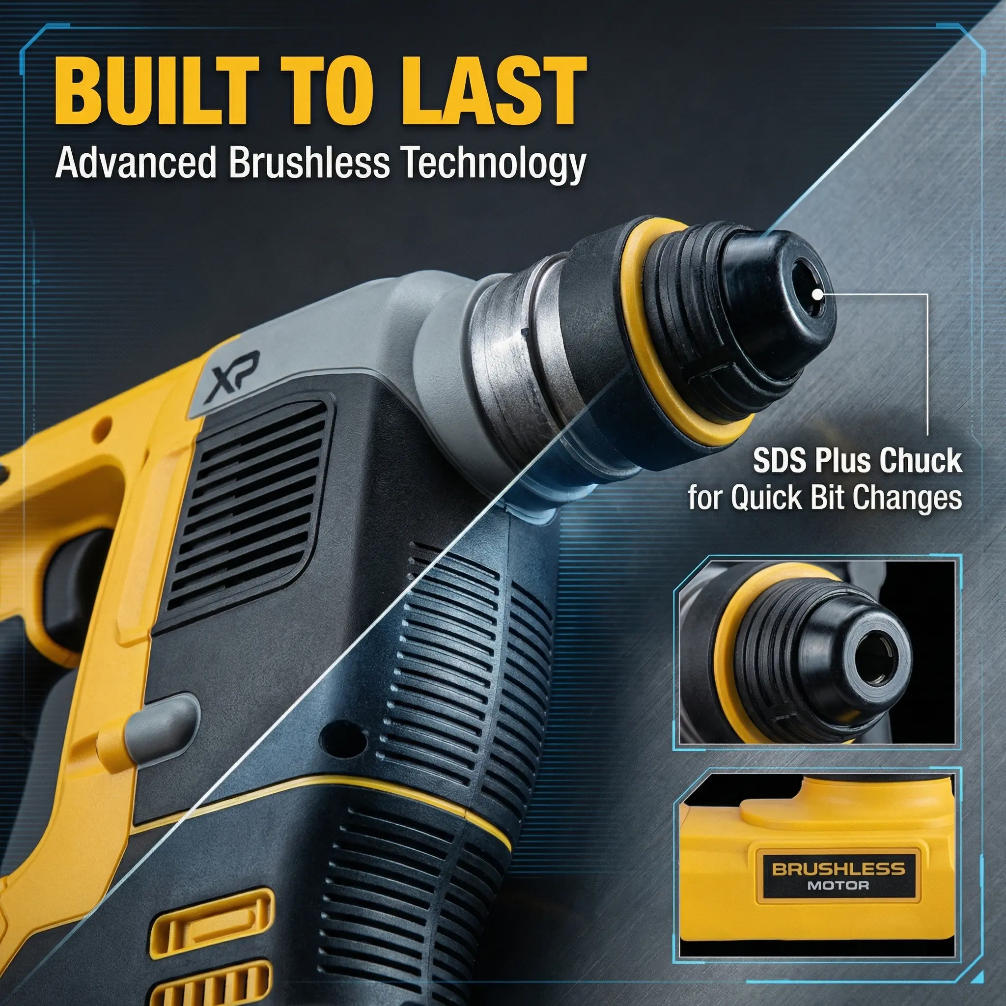 Dewalt DCH273 20V Brushless Rotary Hammer Kit – 2.4J Impact Energy for 4-12mm Concrete Drilling – 360° Auxiliary Handle & Variable Speed (0-4600 BPM)
