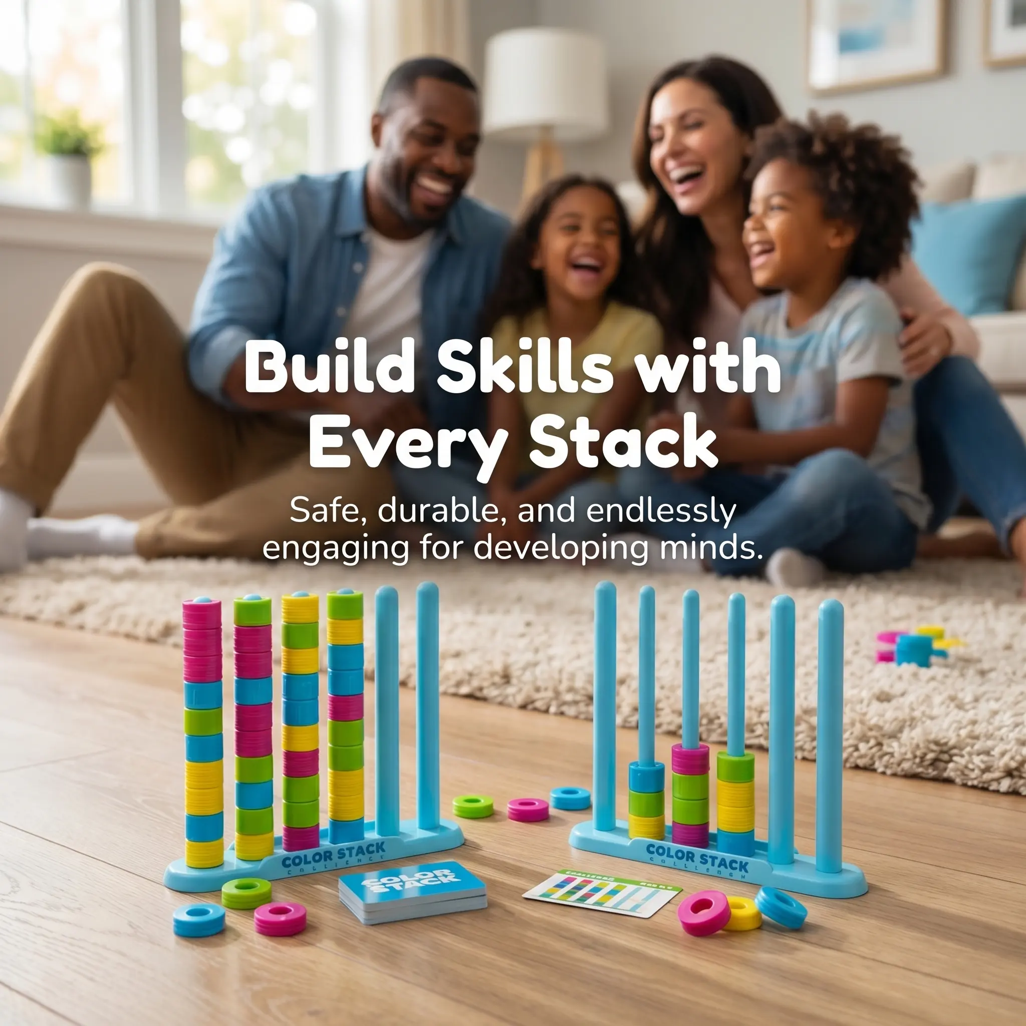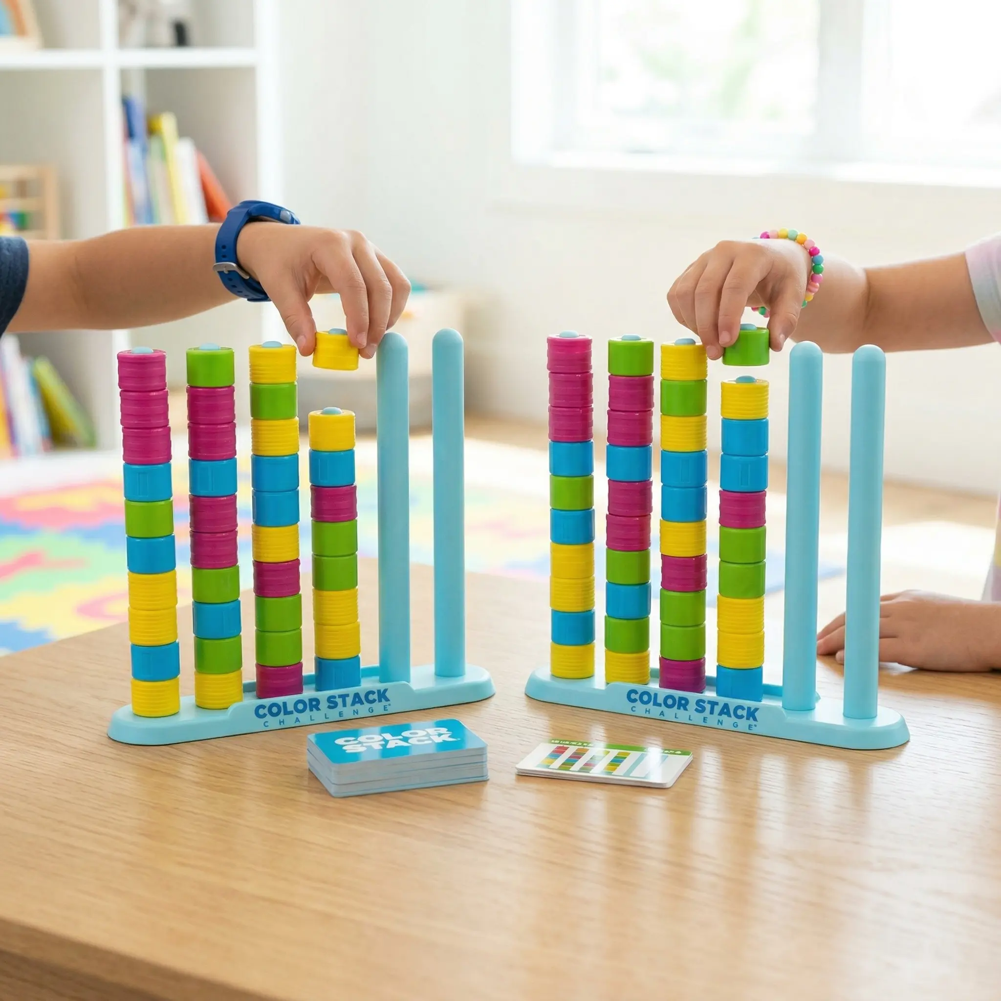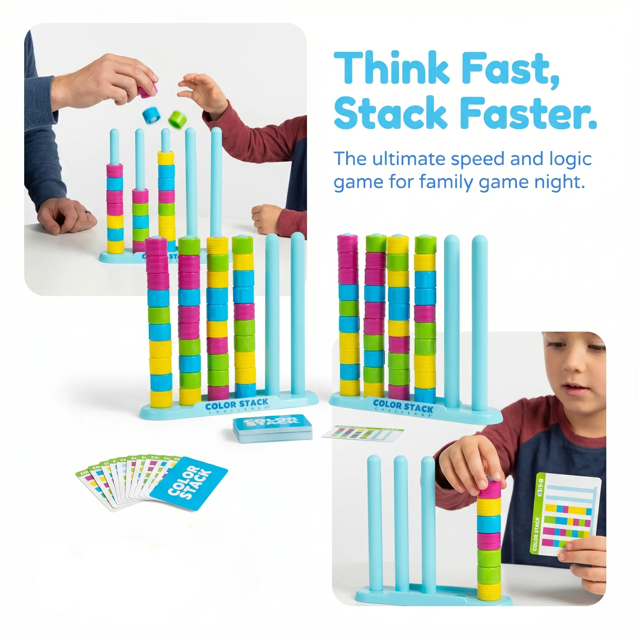Color Stack Challenge Game, Speed Stacking Matching Puzzle for Kids & Families, Educational Color Sorting Board Game for Boys & Girls Ages 6+