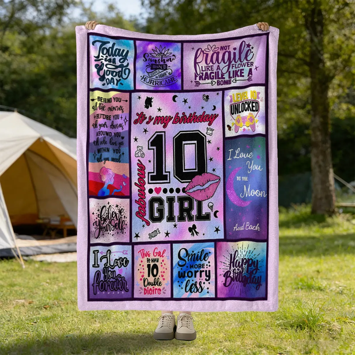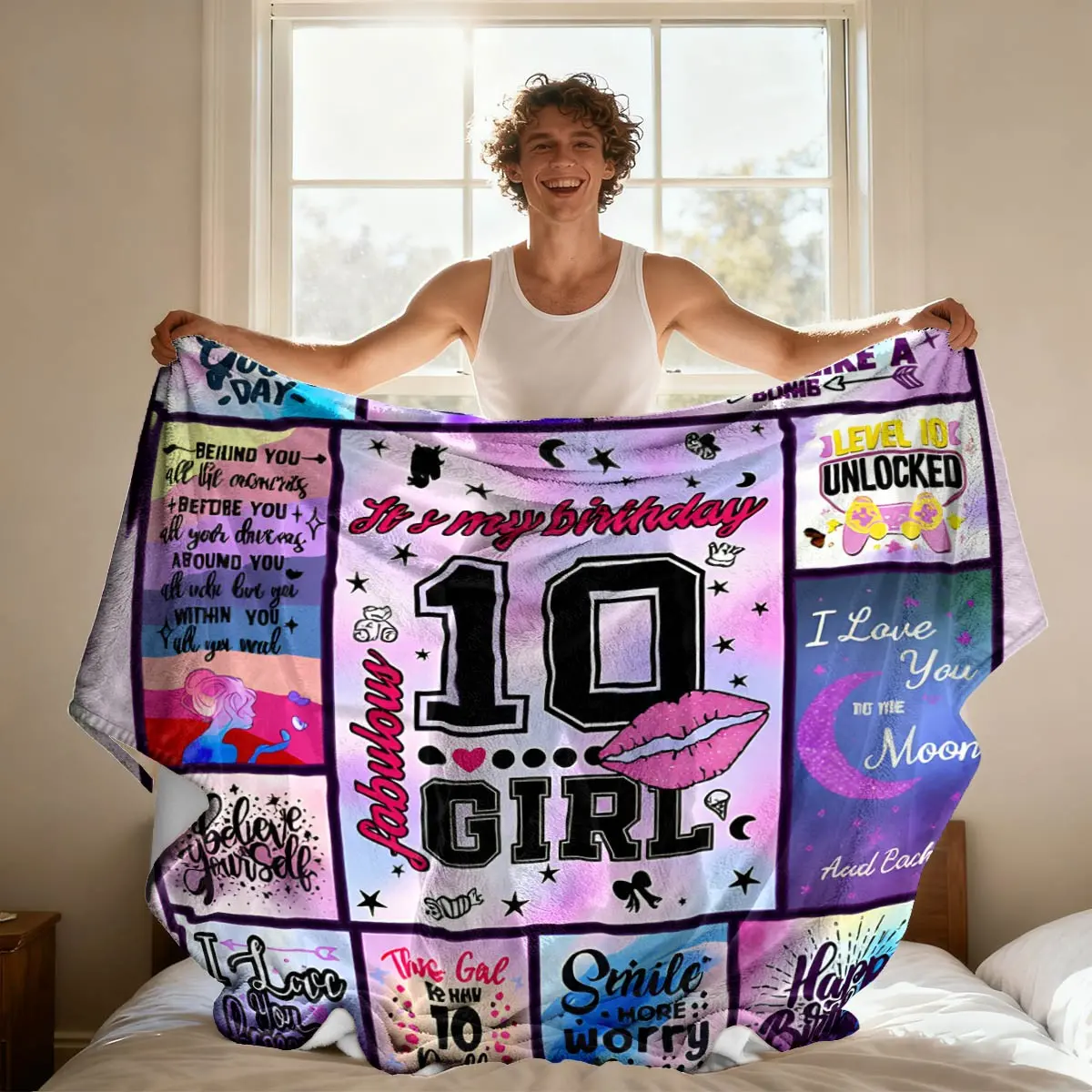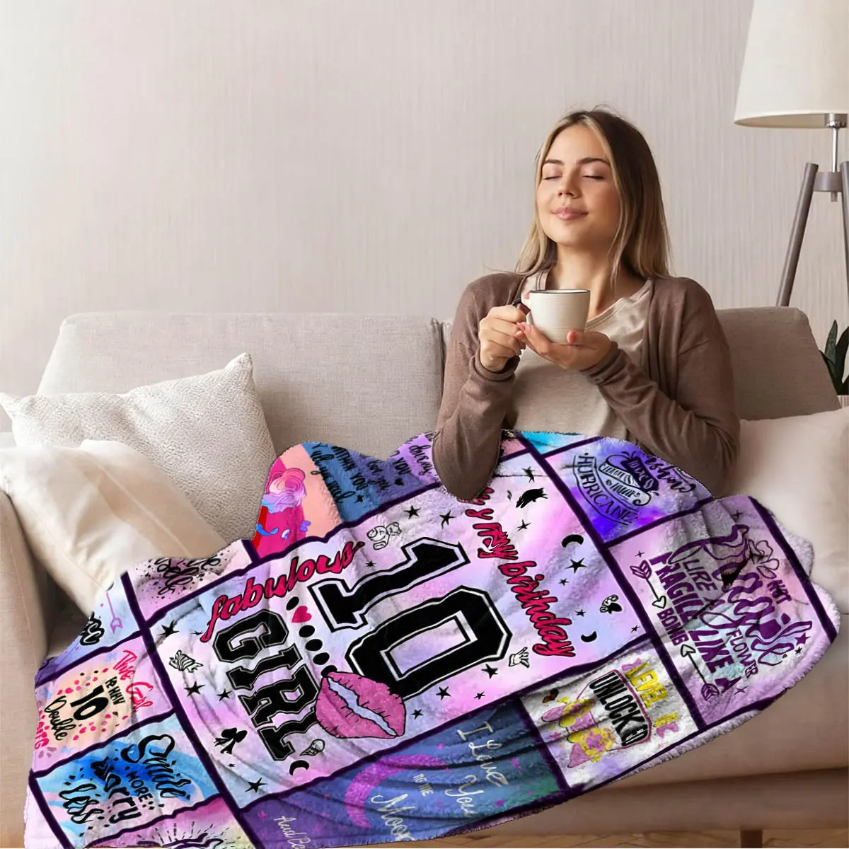 Girls' 10th Birthday Marble Pattern Blanket, Soft Flannel, Lightweight Warm, No Pilling Shedding, Living Room Bedroom Window Cover, Gift Pet Rug