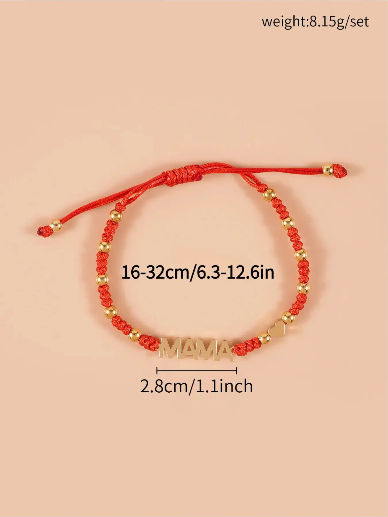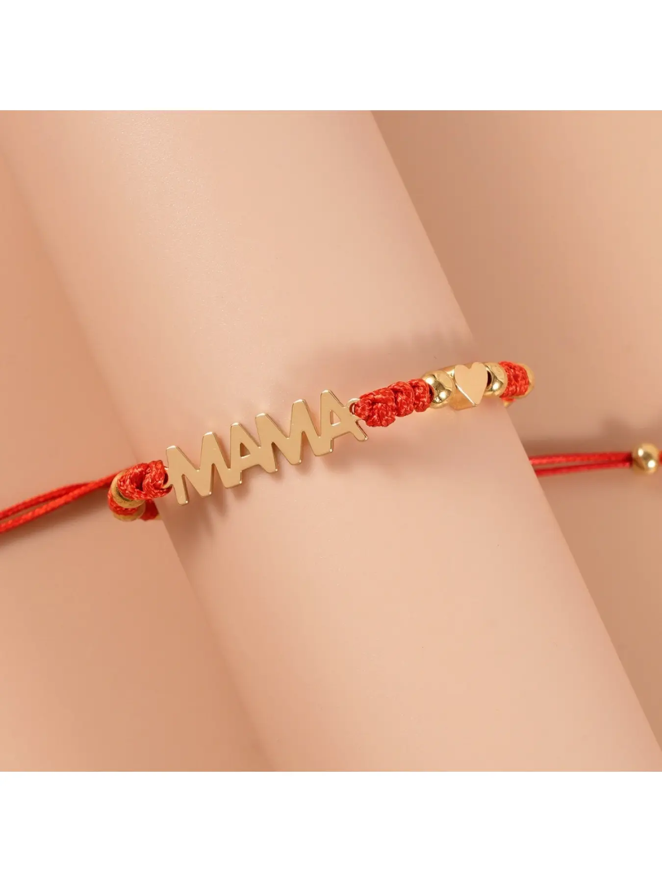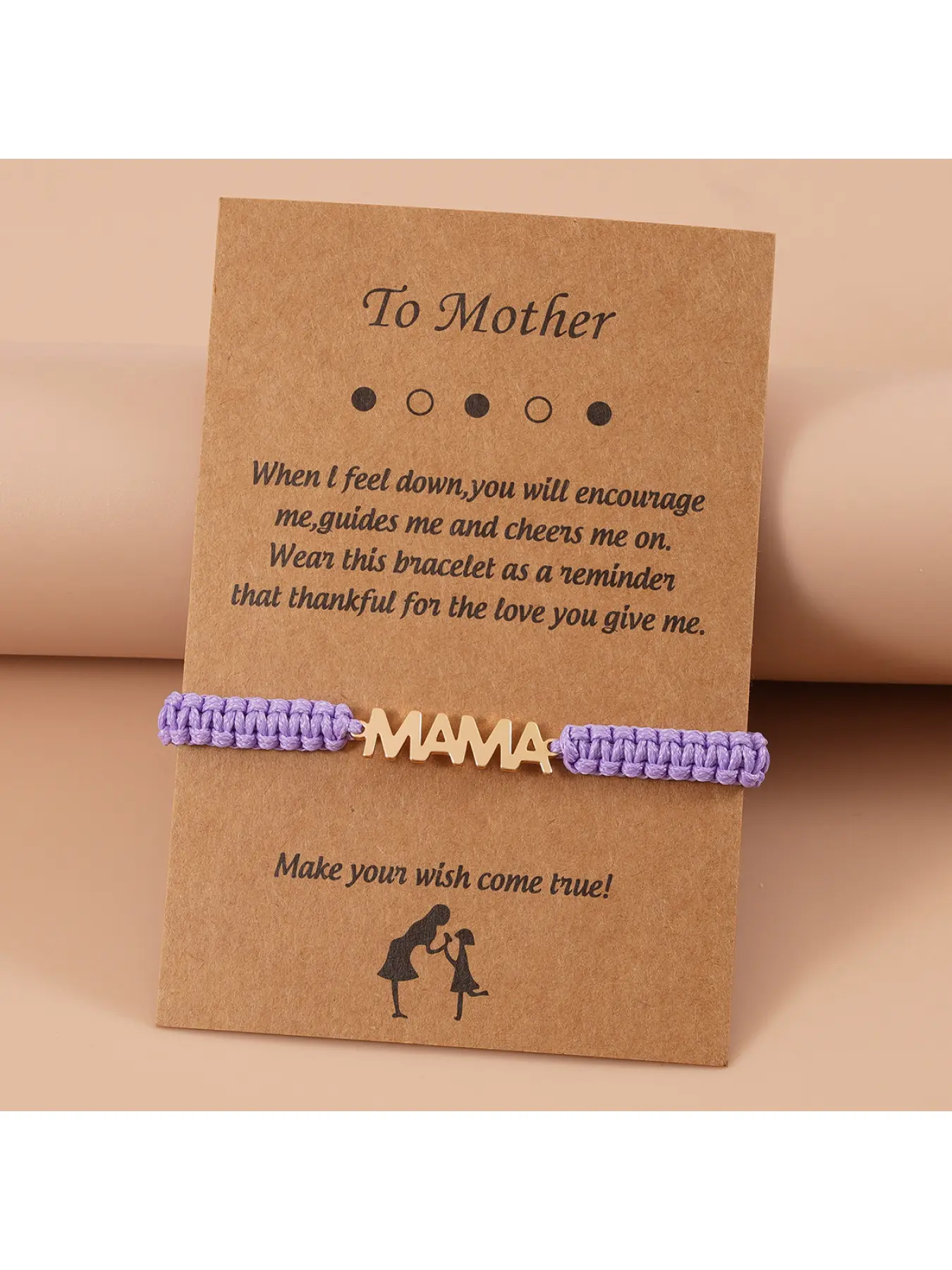 A handmade string bracelet with English letters for your mother. Comes with a card bearing a blessing.