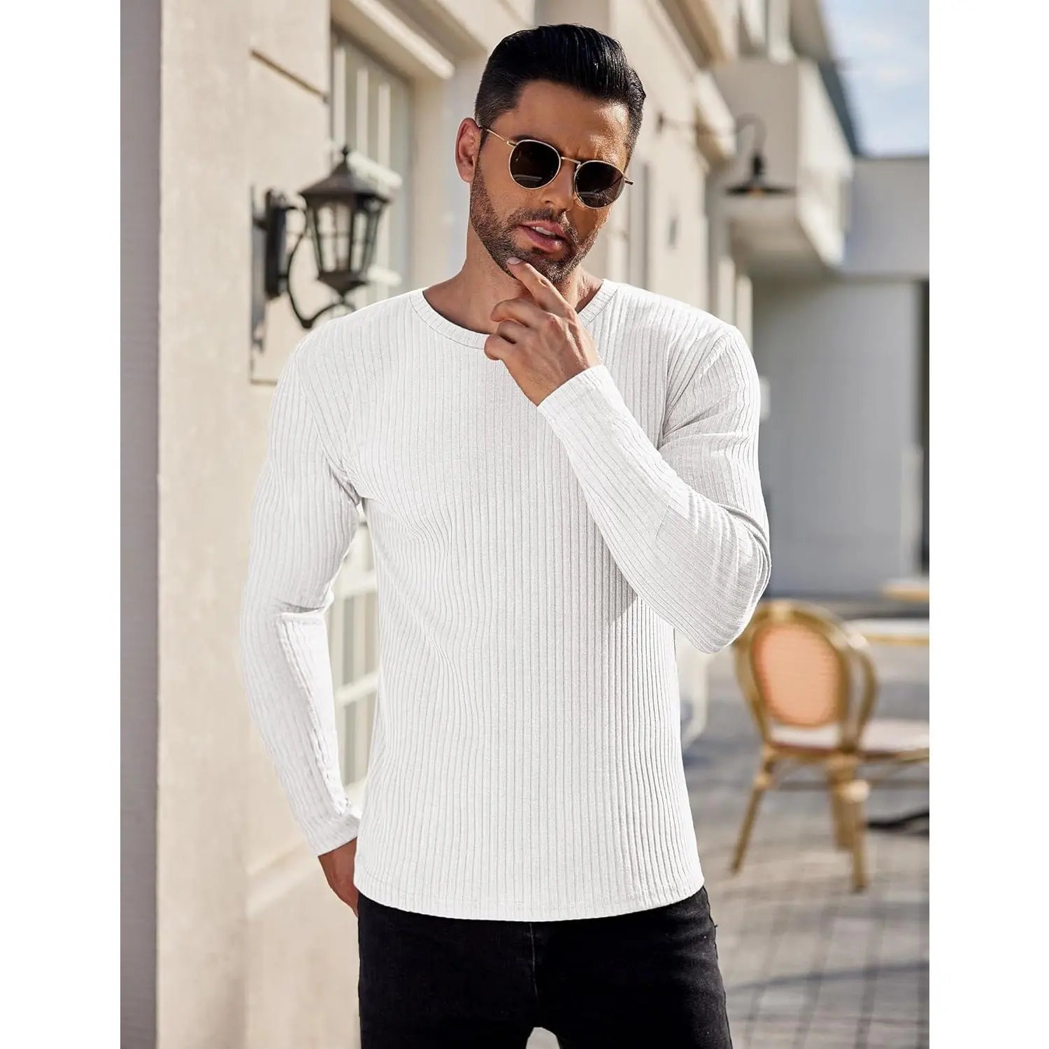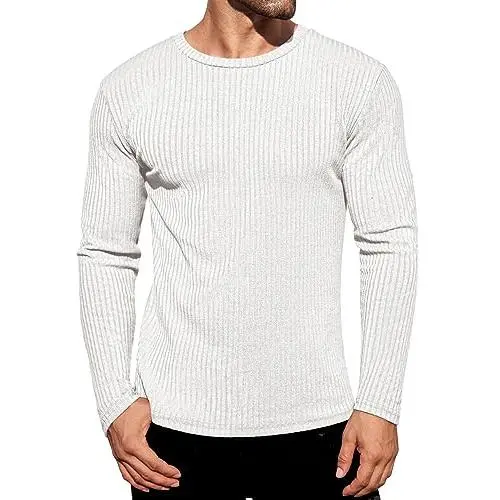 Men's Long Sleeve Ribbed Pullover Thermal Shirt - Crew Neck Stretchy Sim Fit Undershirt Comfortable Breathable Casual Top Perfect for Daily Wear Layering S-3XL Size Range