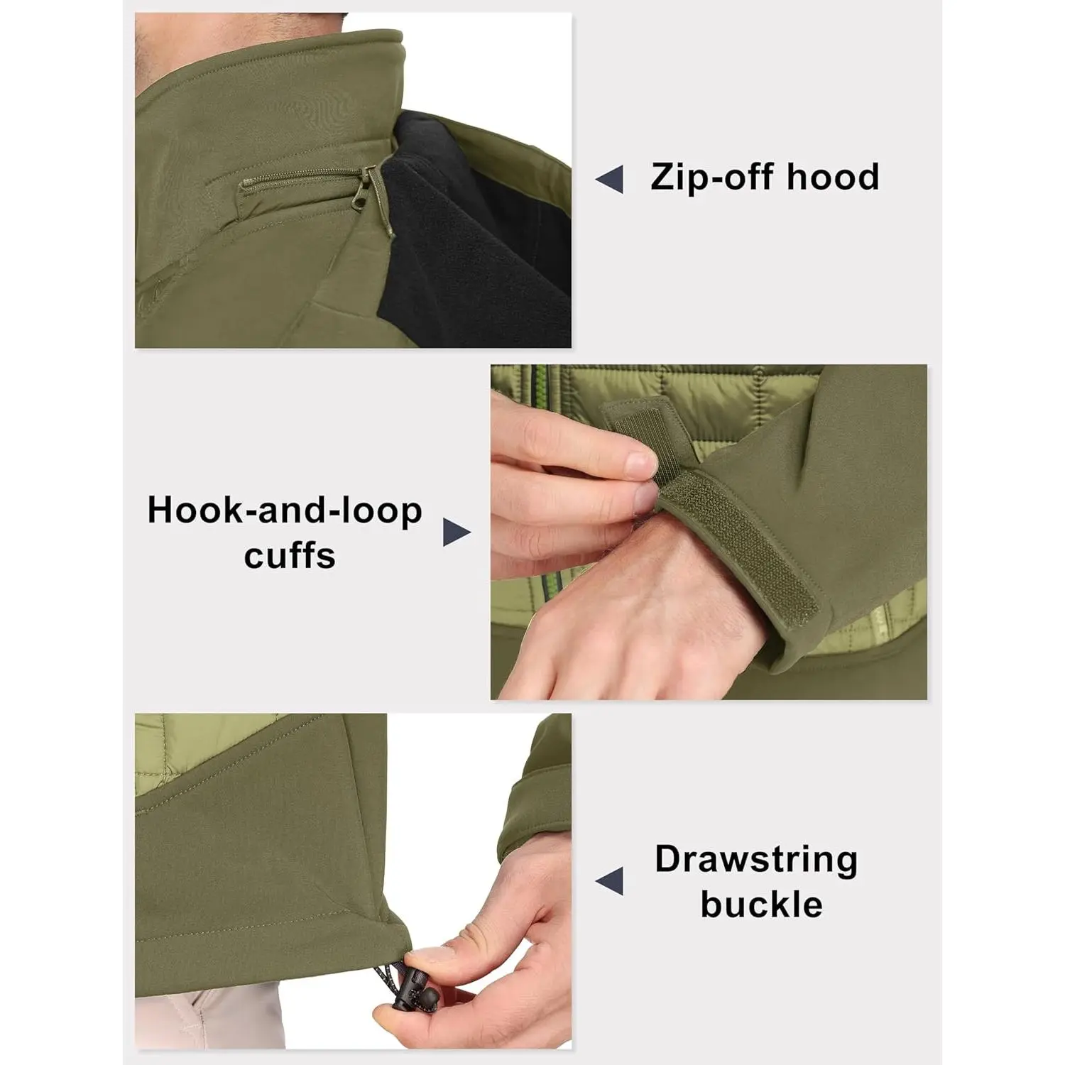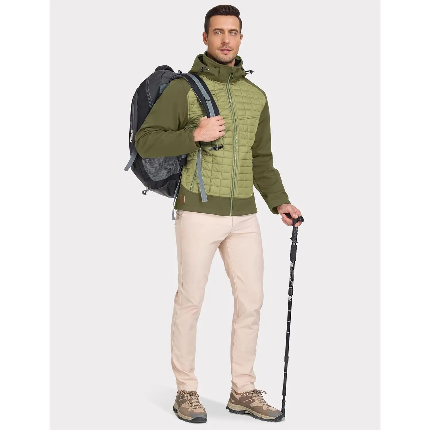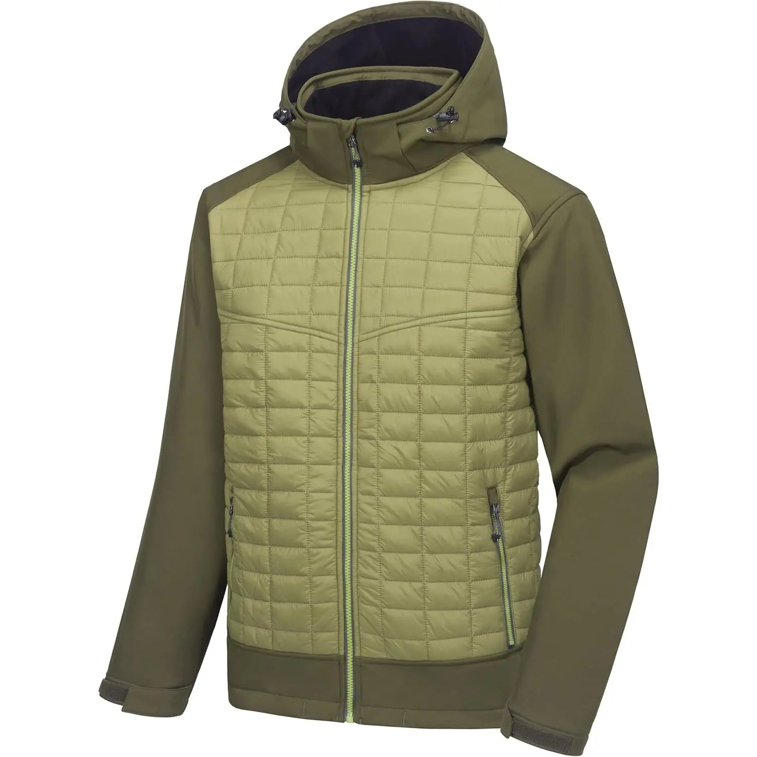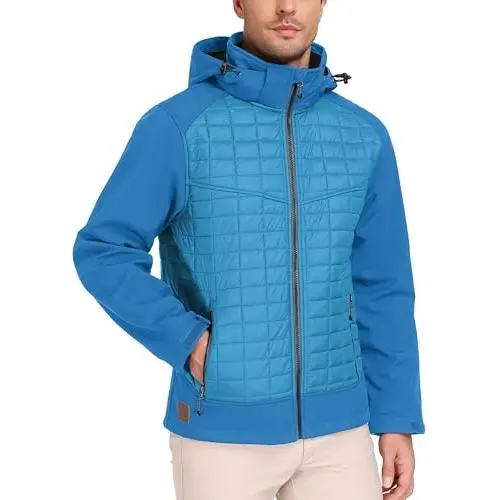 Men's Lightweight Insulated Hybrid Jacket with Removable Hood - Waterproof Windproof Thermal Warm Jacket Perfect for Hiking Running Ski Outdoor Activities Winter Sports Comfortable Breathable Design