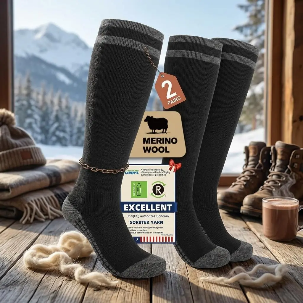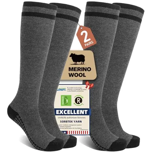 Merino Wool Compression Socks for Women and Men - 2/3 Pairs Knee High Winter Thermal Thick Warm Socks Perfect for Nurse Pregnant Travel Hiking Running Outdoor Activities Comfortable Breathable Moisture Wicking