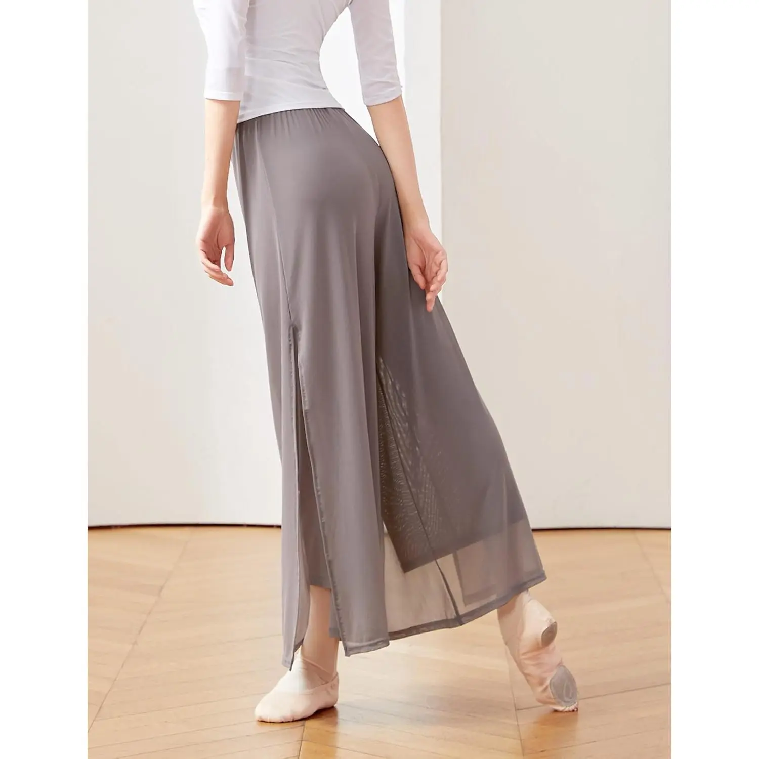Women's Loose Palazzo Pants with 2 Layers and Side Slit - Breathable Comfortable Loungewear Perfect for Dance, Ballet, Yoga, Casual Wear, Stretchy Lightweight Fabric for Daily Activities and Home Relaxation