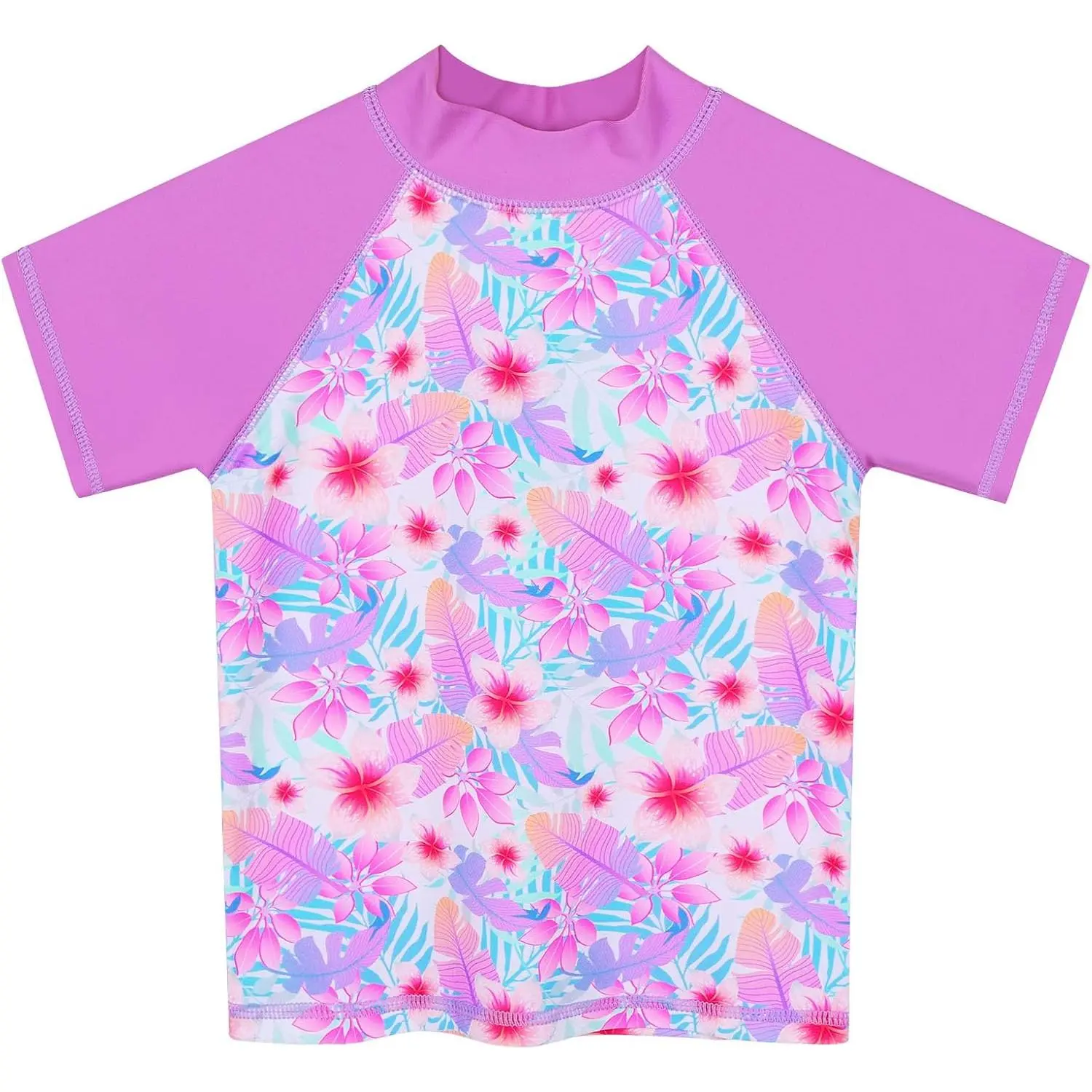 Girls' UPF 50+ UV Protection Two Piece Short Sleeve Rash Guard Bathing Suit - Long Sleeve Beach Swimwear for Kids 3-14 Years Old Sun Protective Swim Top and Bottom Set Perfect for Pool Ocean Water Activities