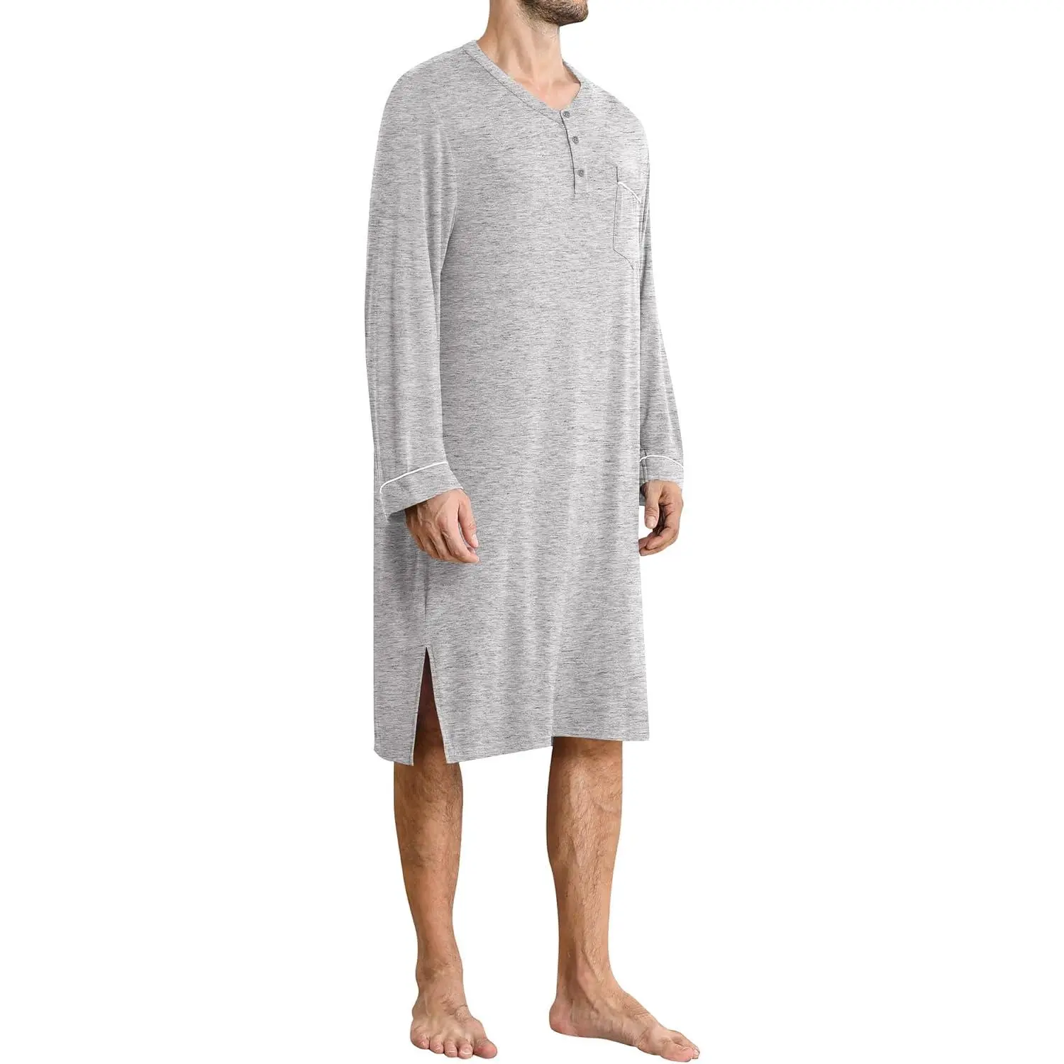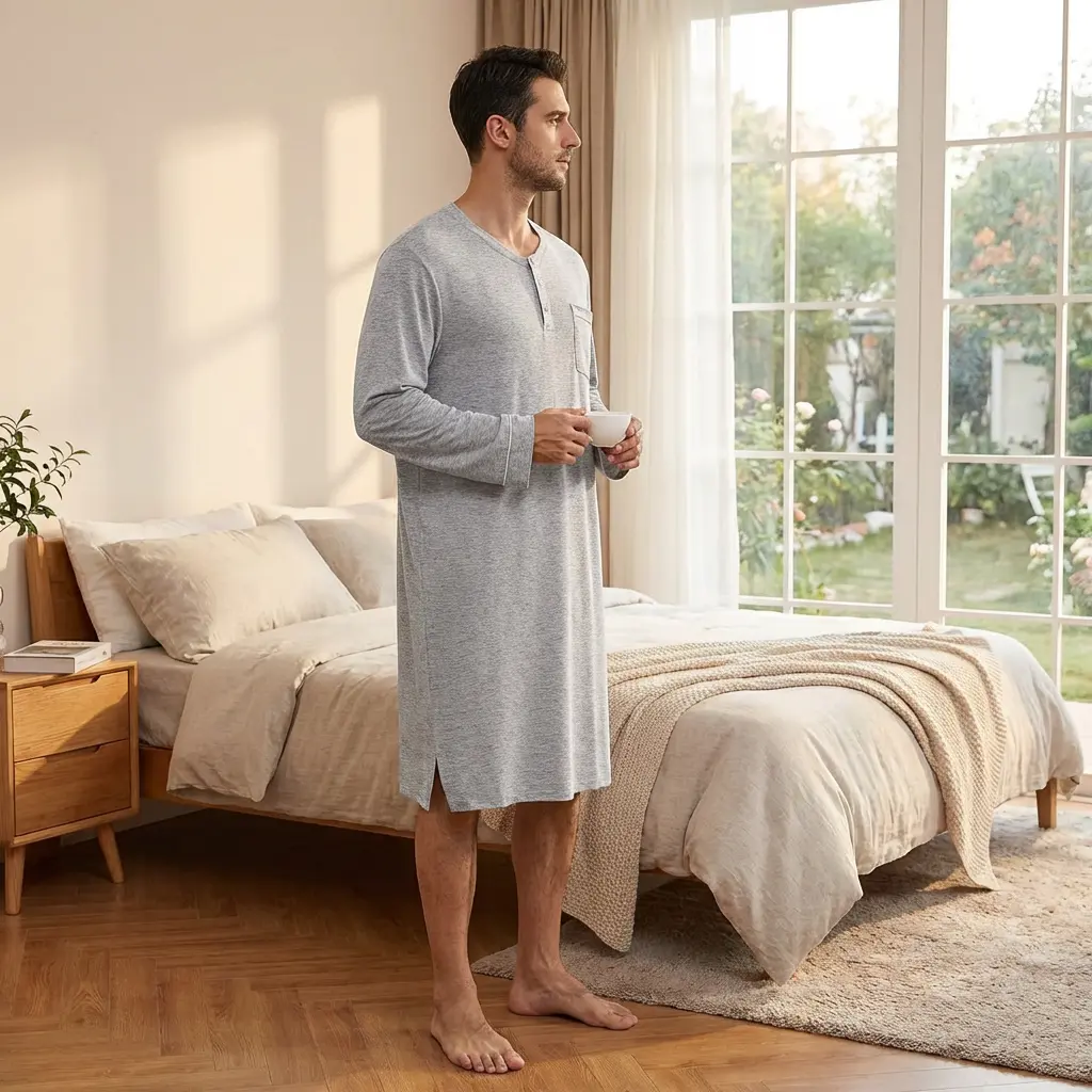 Men's Soft Loose Long Sleeve Nightshirt Nightgown Sleepwear - Comfy Big & Tall Henley Sleep Shirt for Sleeping Comfortable Breathable Fabric Perfect for Lounge Relaxation Home Wear S-XXL Size