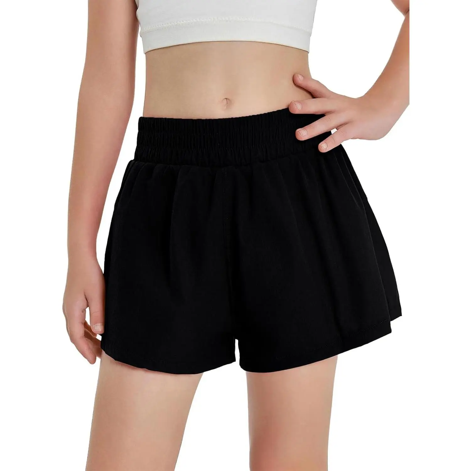 Girls' High Waist Athletic Running Shorts 2-in-1 with Side Pockets - Elastic Waistband Breathable Quick-Dry Fabric Perfect for Sports Gym Workout Yoga Training Comfortable Activewear for Ages 5-14 Years