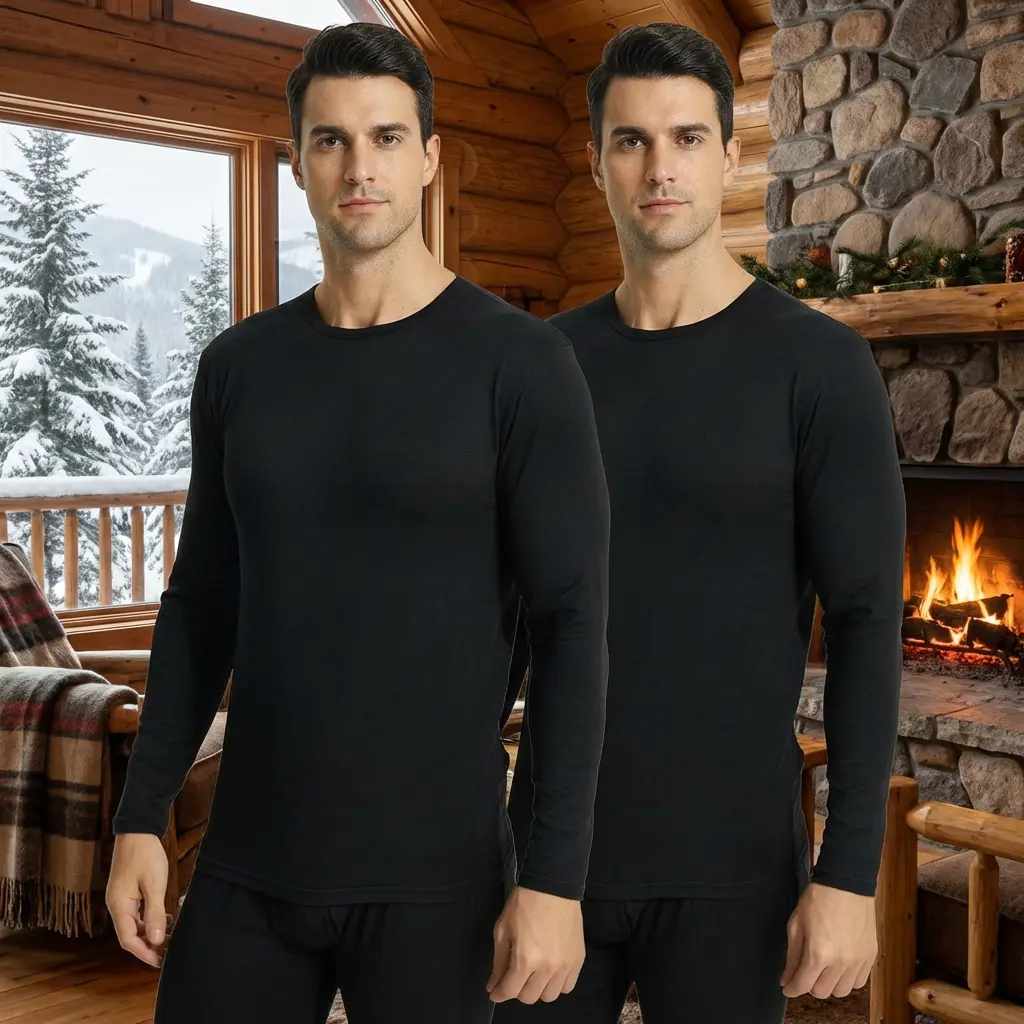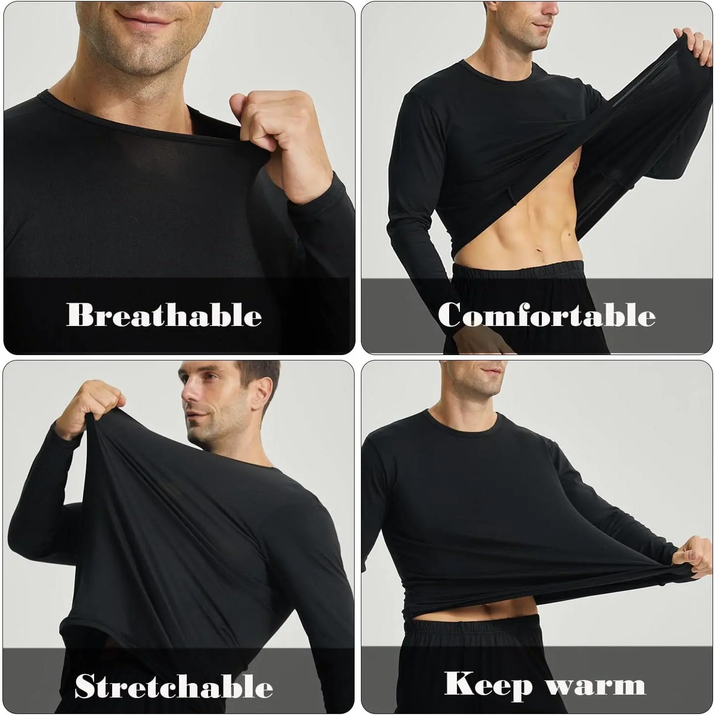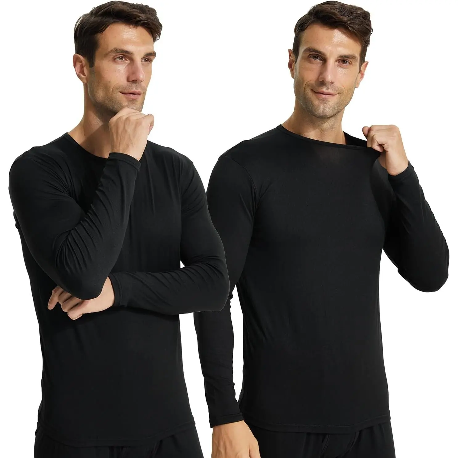 Men's 2 Pack Thermal Shirts - Crewneck Long Sleeve Base Layer Undershirt for Cold Weather, Lightweight Warm Thermal Wear Perfect for Winter Outdoor Activities Hiking Skiing Layering Comfortable Soft Fabric Essential Clothing